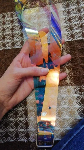 ремень не плохой. НО, это больше не ремень, а просто аксессуар для красоты. он очень тонкий, чувство что выполнен из очень тонкого пластика, он не силиконовый. в врюки не подойдёт. но если использовать как декор под рубашку например, то не плохо. красиво переливаются цвета.
