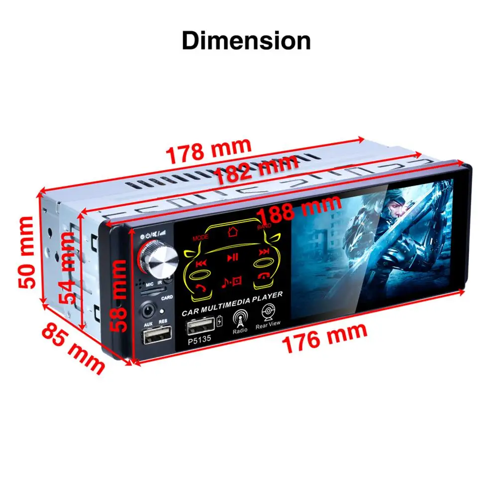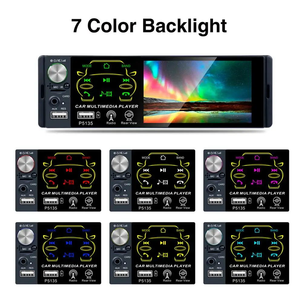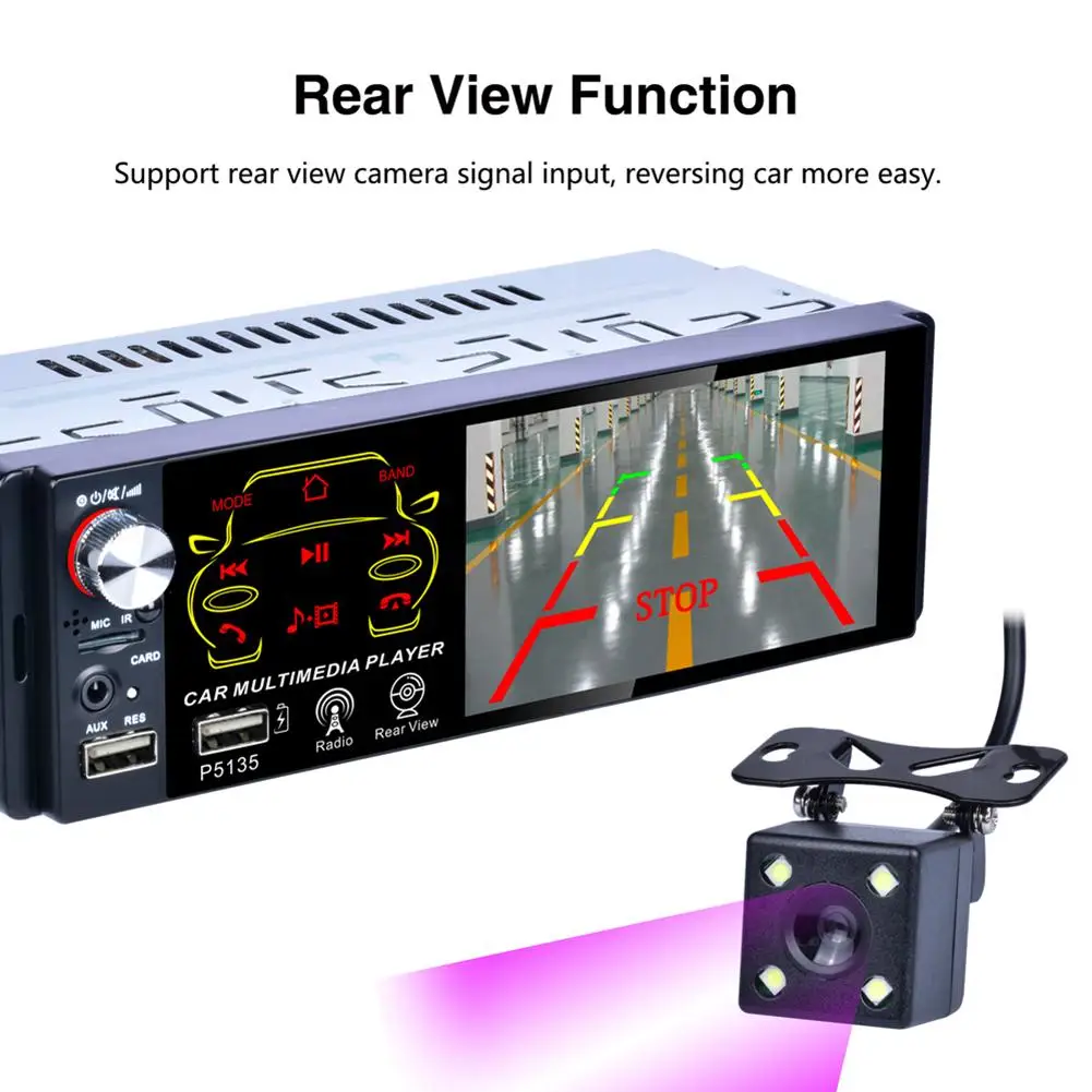 Автомобильный радиоприемник 4,1 дюйма, 1 DIN, с сенсорным HD-экраном, портом Sup, Bluetooth, двумя USB-портами, радиокамерой для автомобиля MP5 P5135