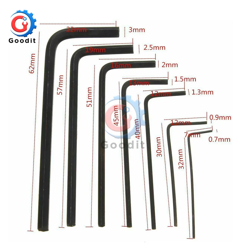 7 шт.компл. 0,7 мм-3 мм мини микро шестигранный ключ Набор отверток Набор инструментов черный 0,7 0,9 1,3 1,5 2 2,5 3 мм