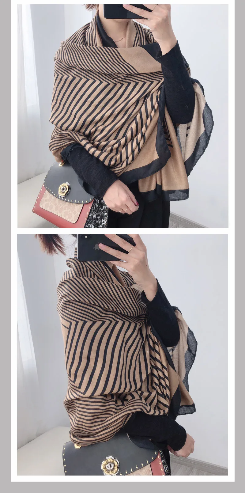 Шарф JTVOVO RUNMEIFA Женский, в полоску, с принтом, большой размер,...