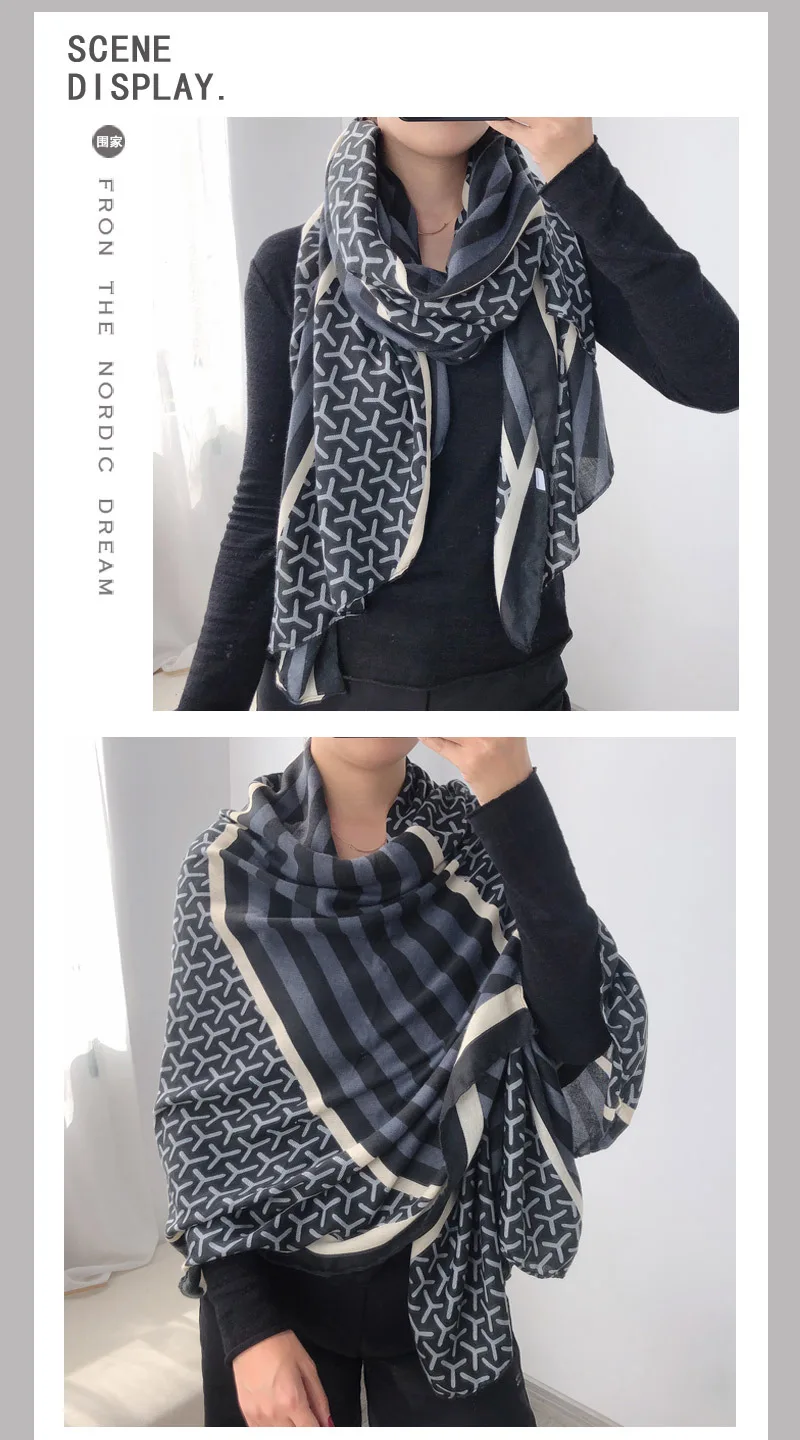 Шарф женский, хлопковый, с принтом, весенне-зимний, теплый, 2020
