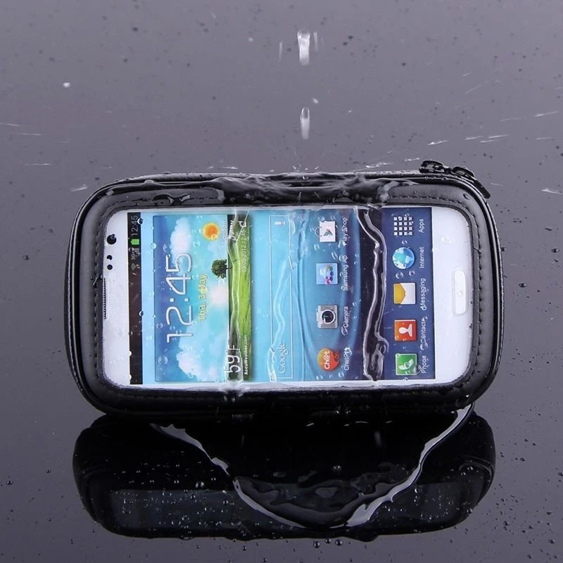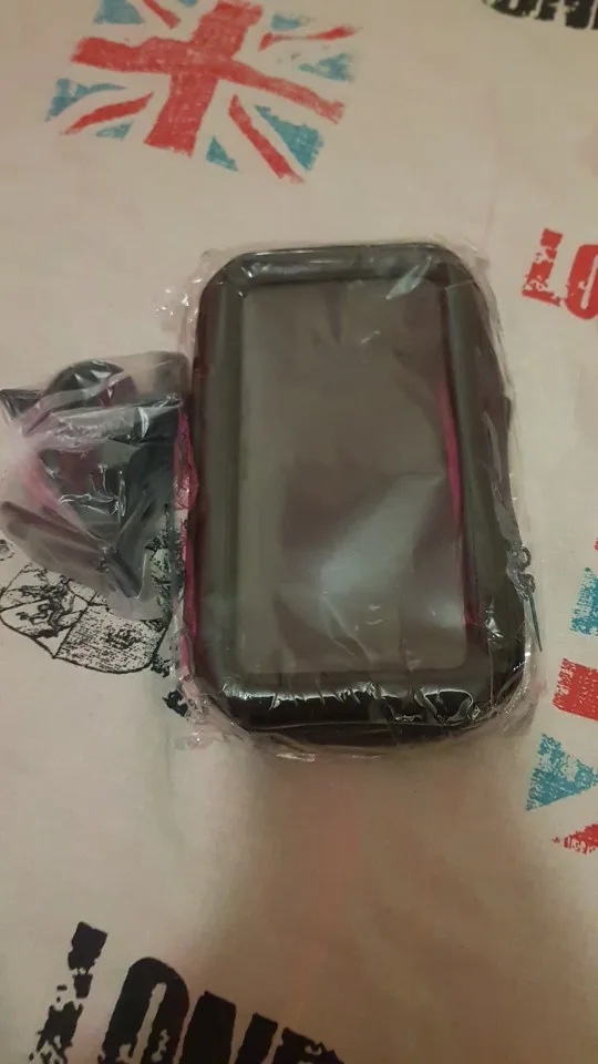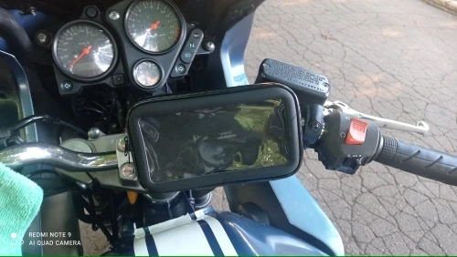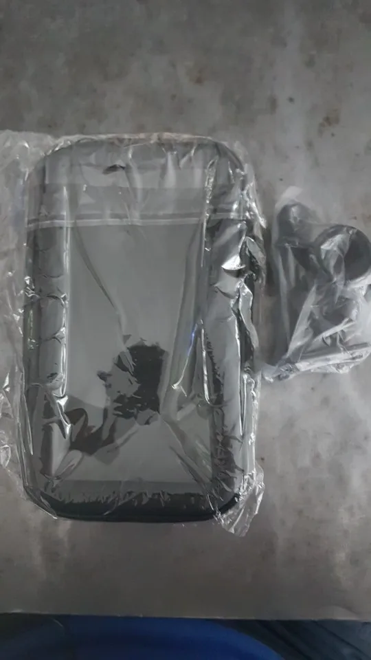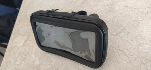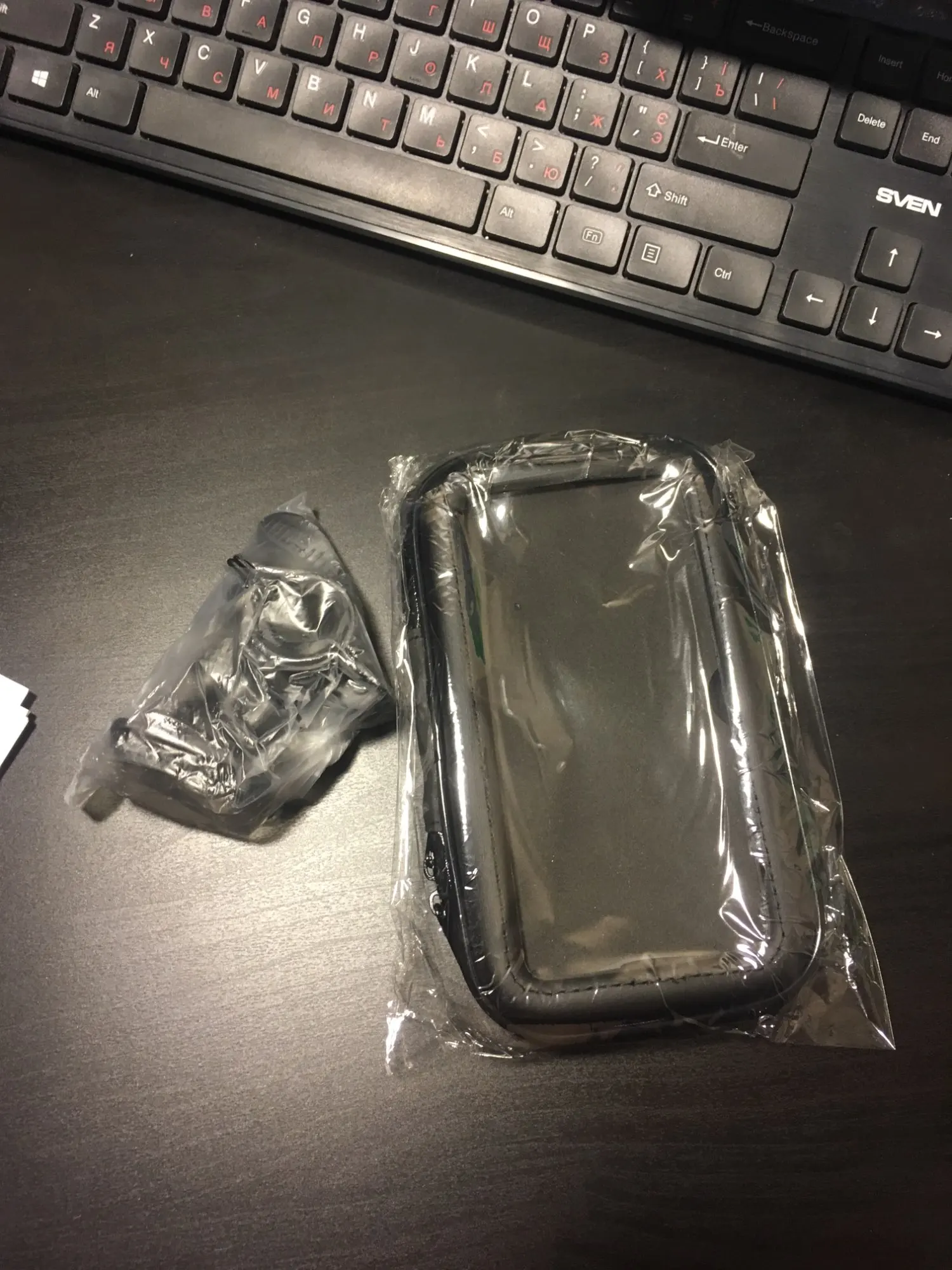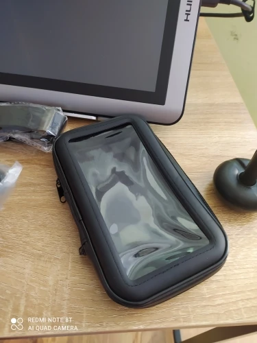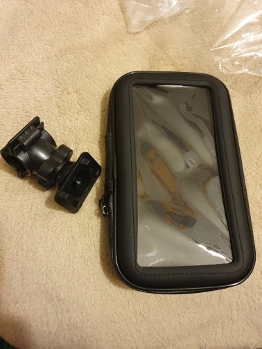 Хороший держатель, 6-дюймоовый телефон влезает нормально, прижимается плотно, сквозь пленку сенсор реагирует, в крепление вставляется крепко, но на мотоцикле я все равно бы для надежности подцепил бы цепочкой, колечко для этого имеется на обратной стороне держателя.