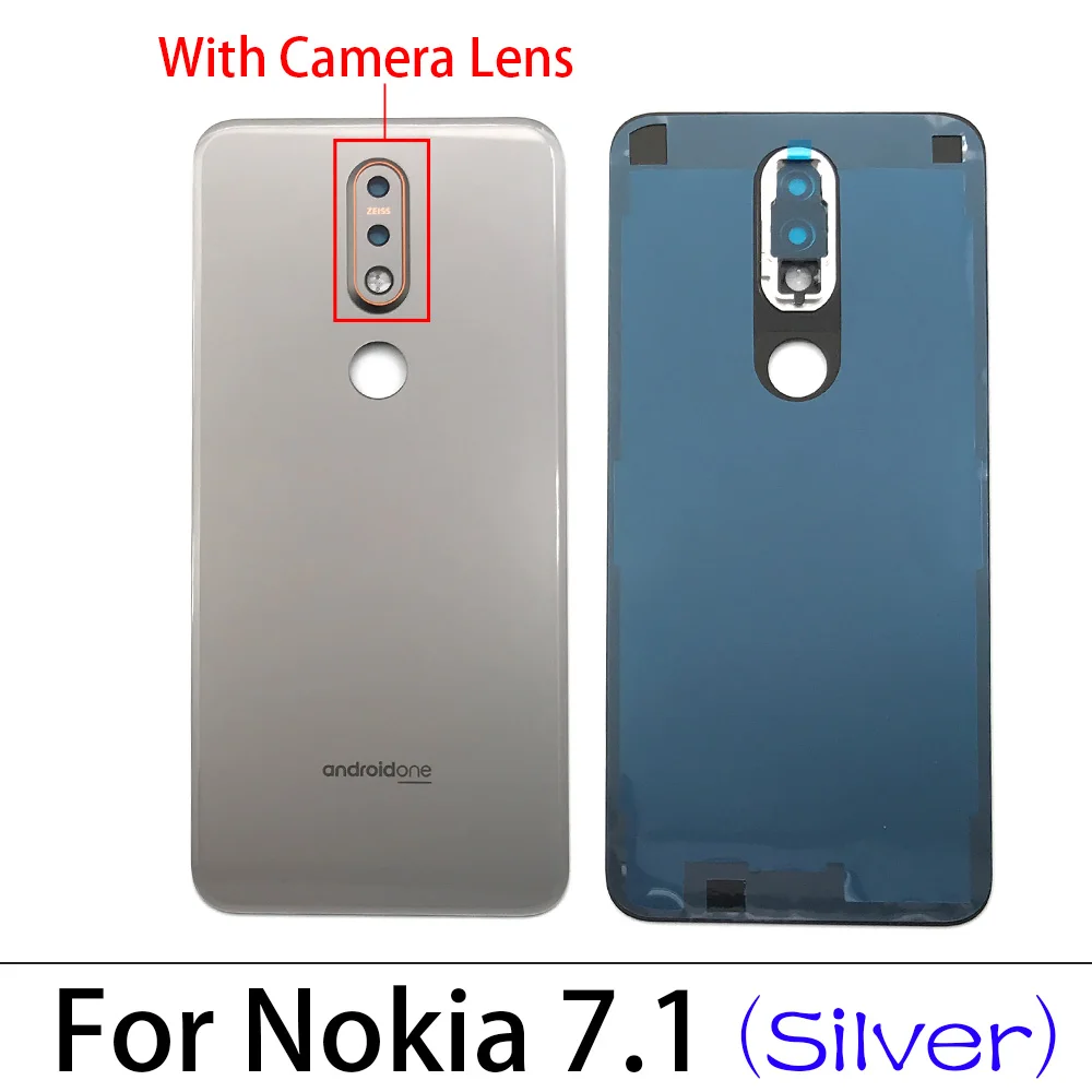 Задняя стеклянная крышка для Nokia 7,1, черныйсеребристыйсиний