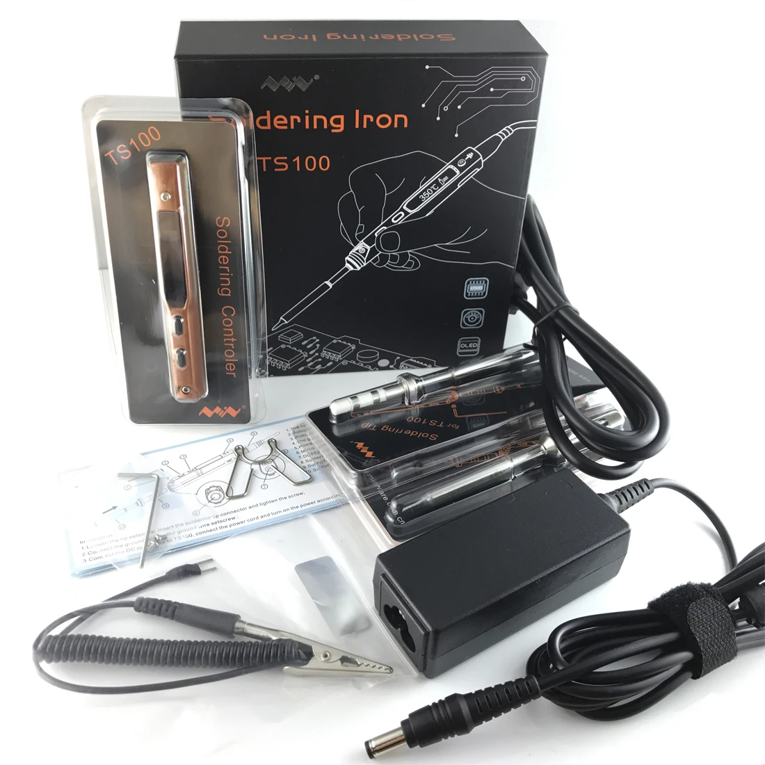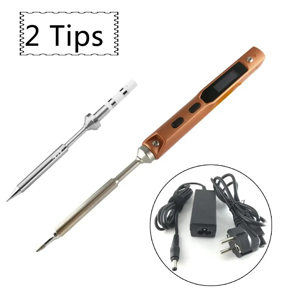 Портативная паяльная станция Mini TS100, золотистый оригинальный комплект с OLED-дисплеем, быстрый нагрев, два наконечника, B2, BC2, источник питания