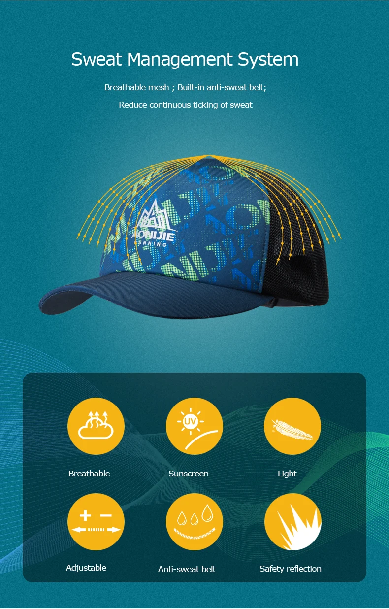 Параметры: Бренд: AONIJIE Товар: уличная Спортивная Кепка Модель: E4106 # Материал: полиэстер Окружность головы: рекомендуется 55-60 см Вес: Приблизительно 75 г Применение: бег, туризм, бейсбол, тропа