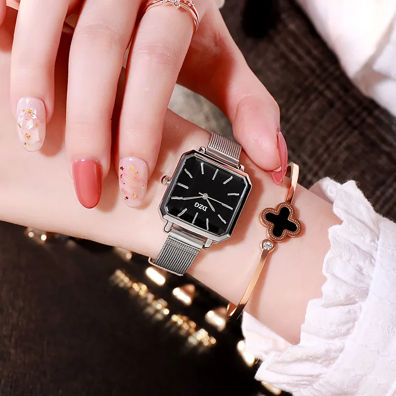 Модные популярные женские часы, стальные сетчатые квадратные кварцевые наручные часы, простой стиль, повседневный подарок, Часы Relogio Feminino, Прямая поставка