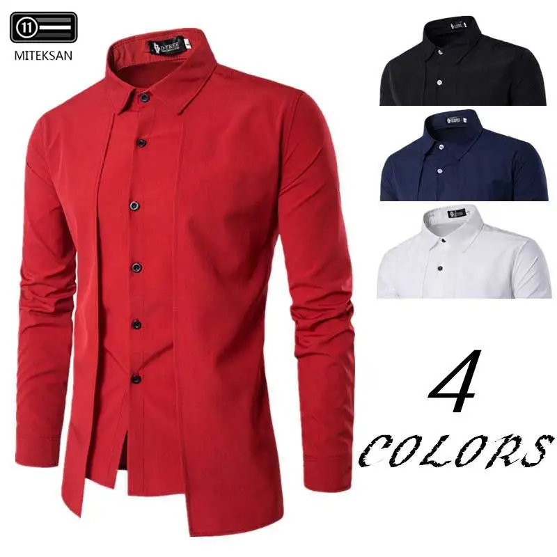 Мужская рубашка с имитацией двух предметов MITEKSAN, белая Повседневная рубашка с длинными рукавами, модная двухдверная рубашка, рубашка для выпускного вечера, 2019 (