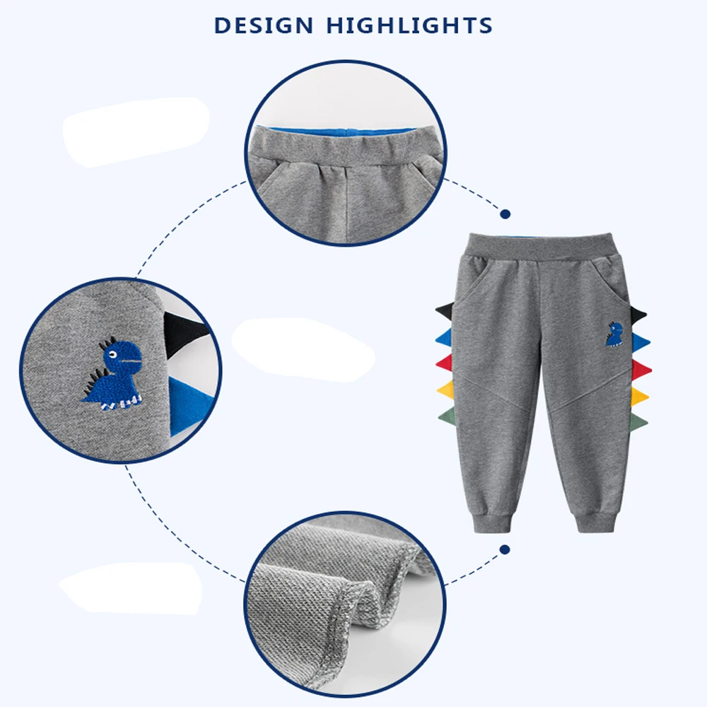 TOUповседневные брюки для маленьких мальчиков на весну и осень детские мягкие спортивные штаны детские хлопковые брюки с динозаврами