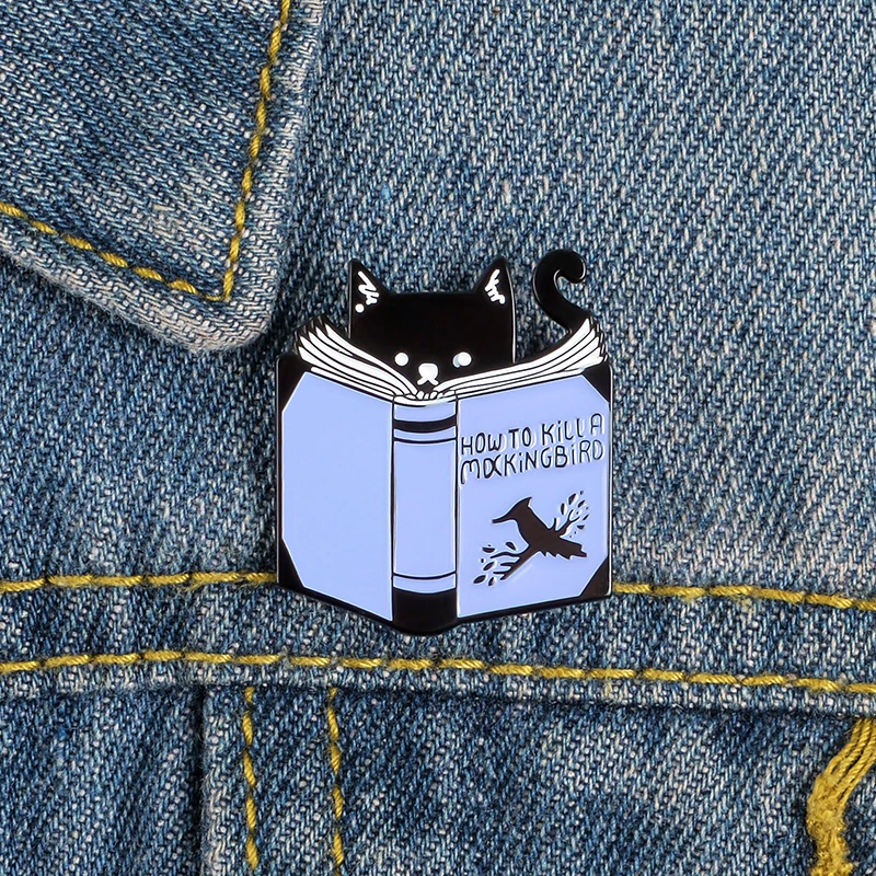 Эмалированная брошь в стиле панк для чтения кота, как убить насмешливую птицу, литература, креативная булавка на лацкан для рубашки значки с животными, подарки для чтения ювелирных изделий