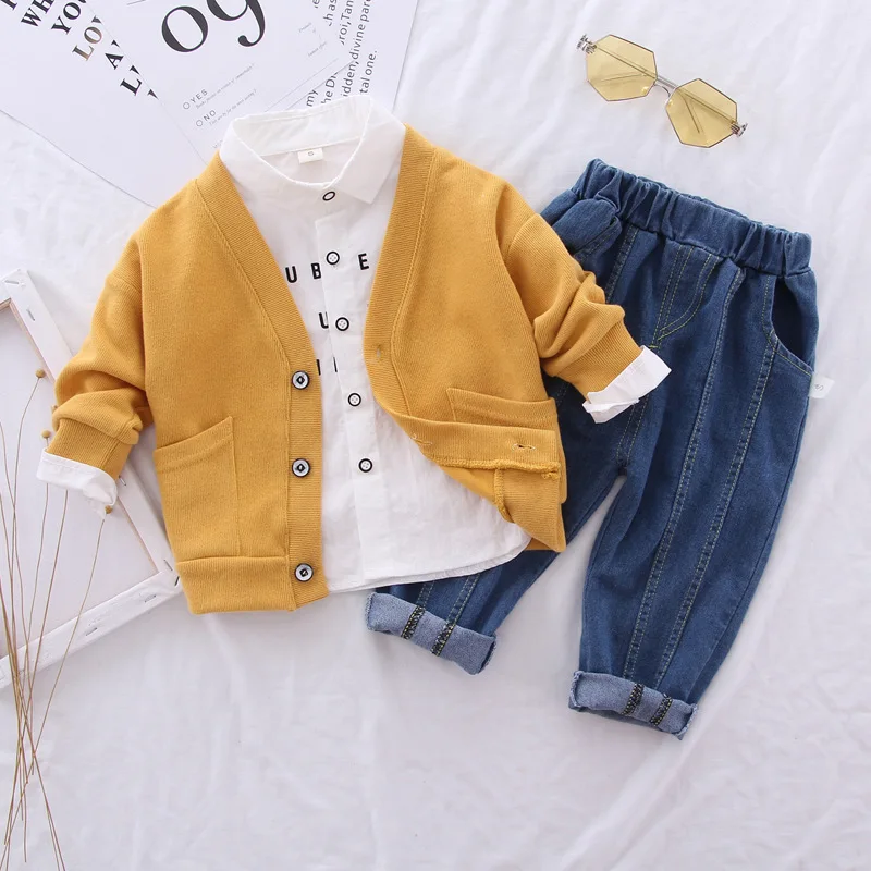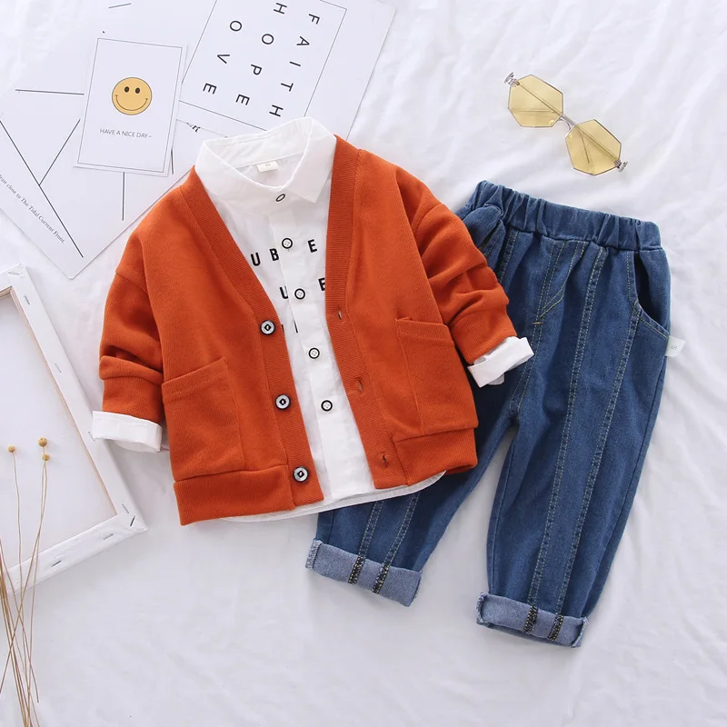 Комплект одежды для мальчиков, свитер, джинсовая куртка, рубашка, 3 шт., От 1 до 4 лет