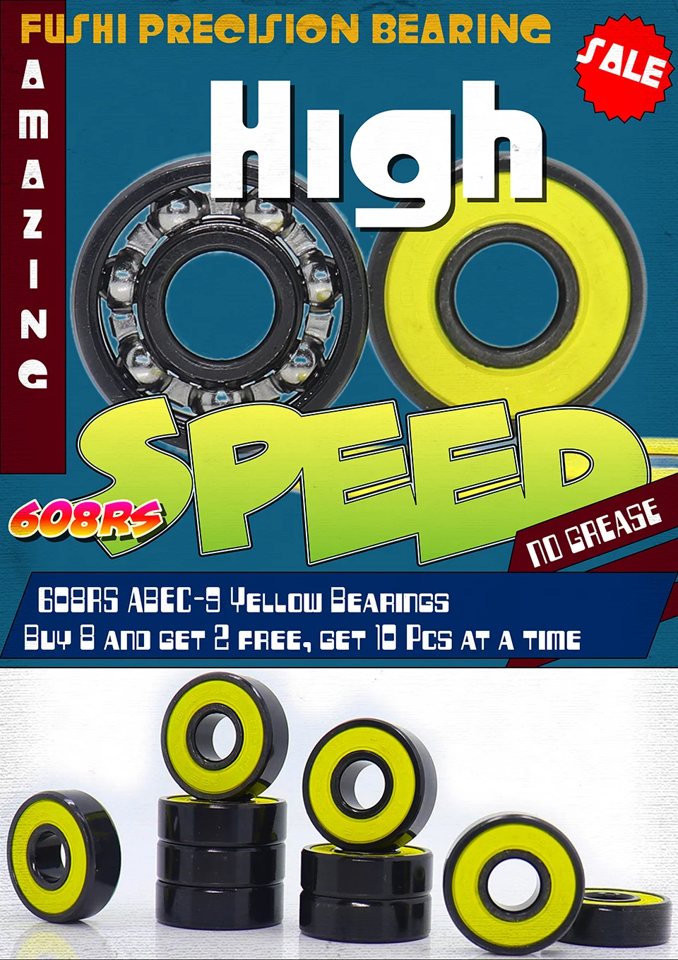 livré en 1 semaine et demi ,les roulements sont graisser cette mais il faut les faire rouler pour "fluidifier" la graisse sinon on a l'impression qui ne tourne pas alors qui faut juste pratiqué le mouvement du roulements pour chauffer la graisse et donc la fluidifier, très jolie et parfait pour le skate...