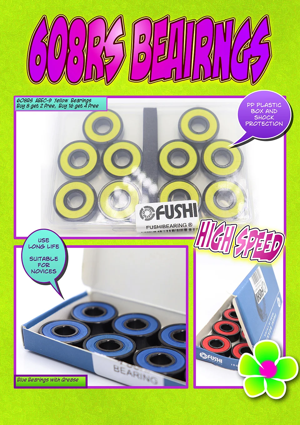 Подшипники просто прекрасны, великолепно катят и красиво выглядят. Поставила их на скейт и очень довольна