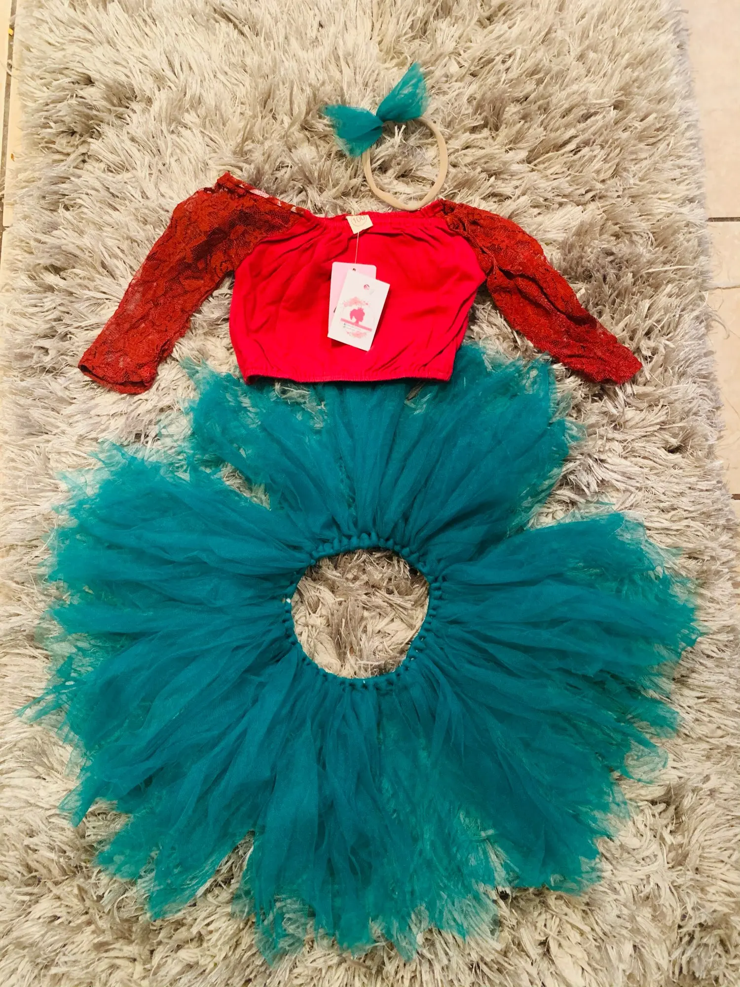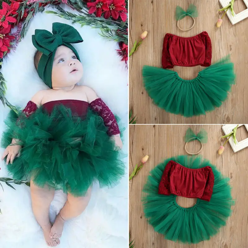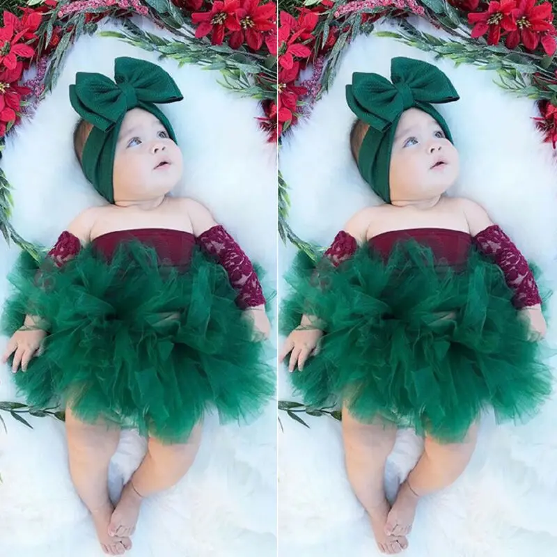 Рождественская одежда принцессы для маленьких девочек, кружевной лоскутный топ + юбка-пачка + милый бант, модный Рождественский наряд