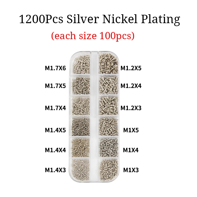 1200 шт Ассорти микро винты для очков M1 M1.2 M1.4 M1.7 с круглой г...
