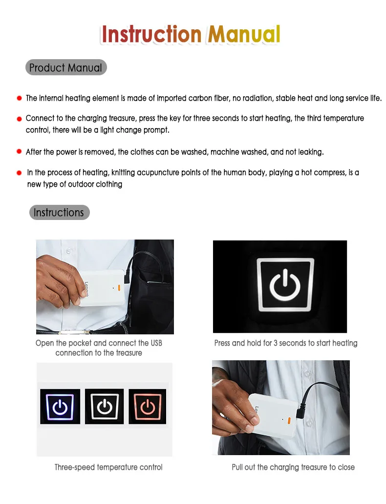 Общий источник питания с USB-интерфейсом, более длительный срок службы, защита от брызг воды и стирка.
