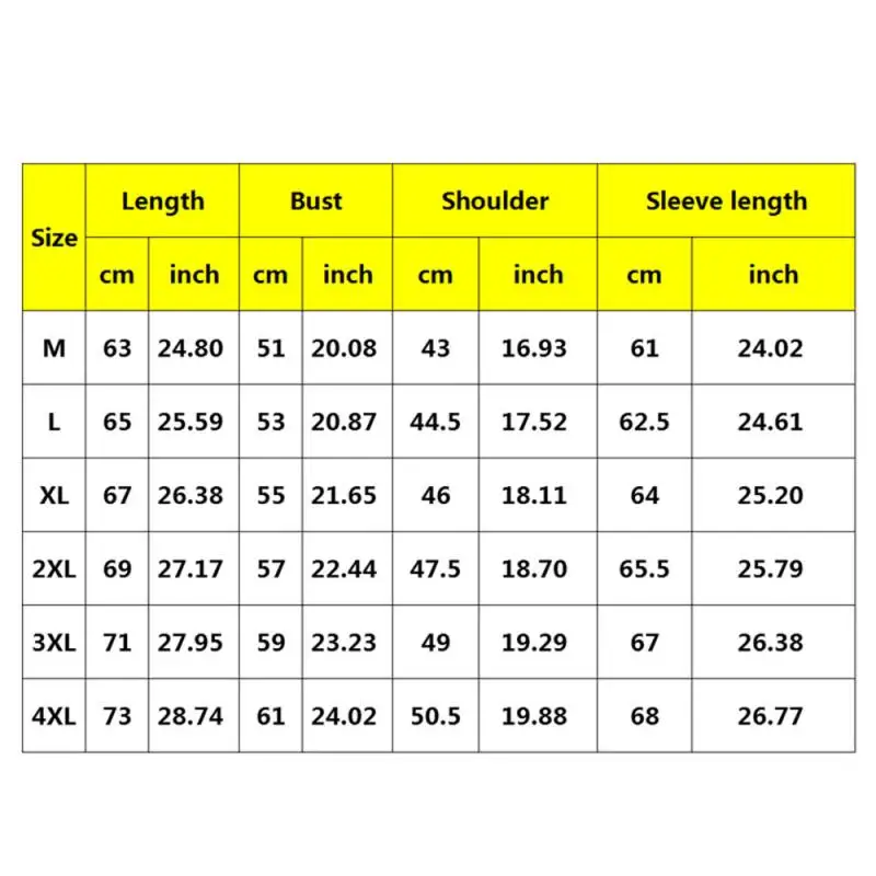 Размер: 4XL Длина: 73 см/28,74 дюйма Бюст: 61 см/24,02 дюйма Плечо: 50,5 см/19,88 дюйма Длина рукава: 68 см/26,77 дюйма