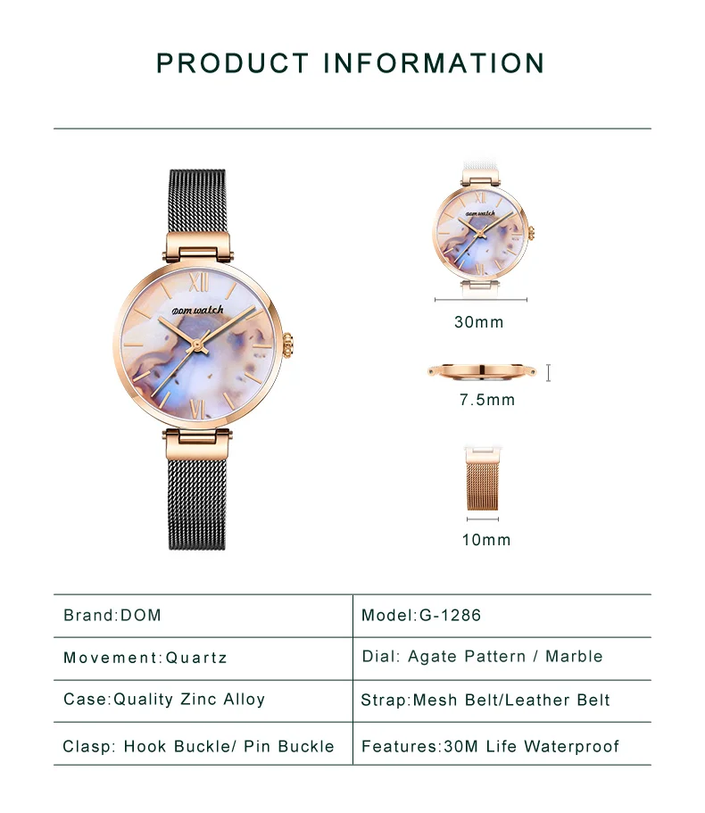 DOM Роскошные модные женские часы, женские часы из нержавеющей стал...