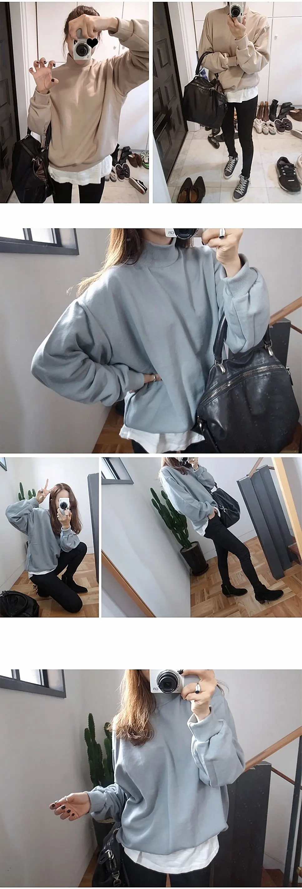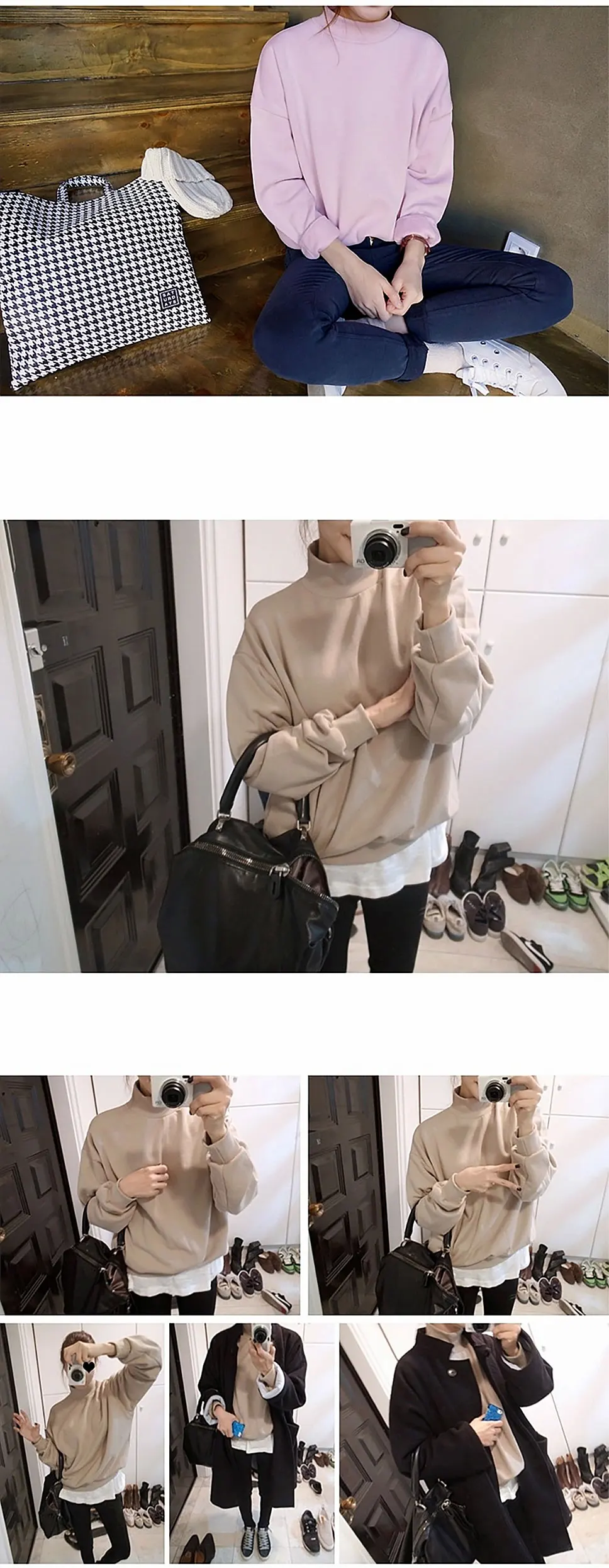 Женский пуловер с длинным рукавом, свободный однотонный утепленный ...
