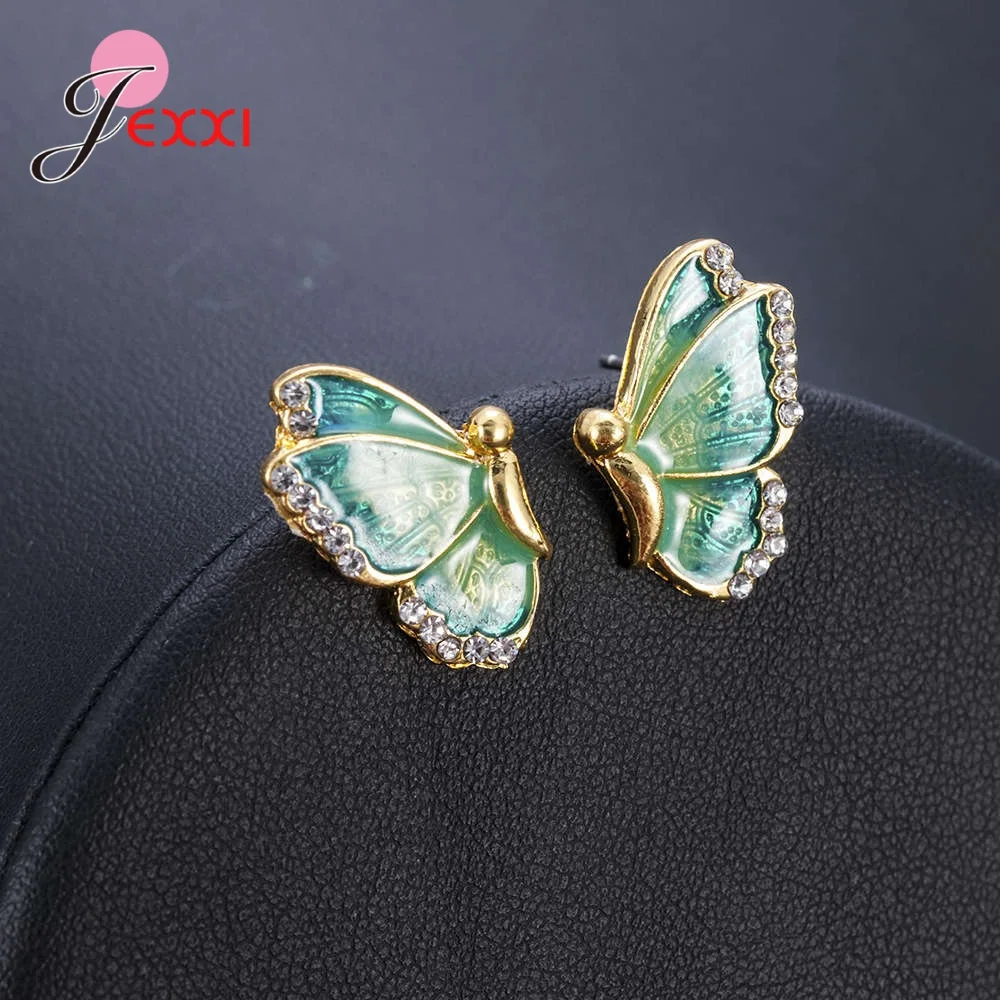 100% чистое 925 пробы серебро летающие Butterfuly серьги гвоздики д...