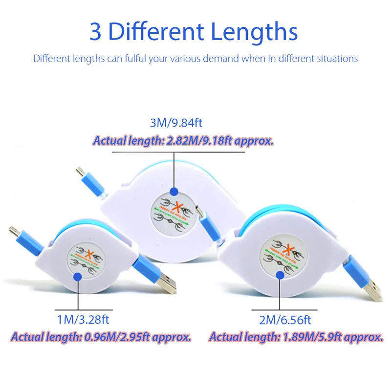 feature 2extendable retractable micro usb v8 android cable cord link wire