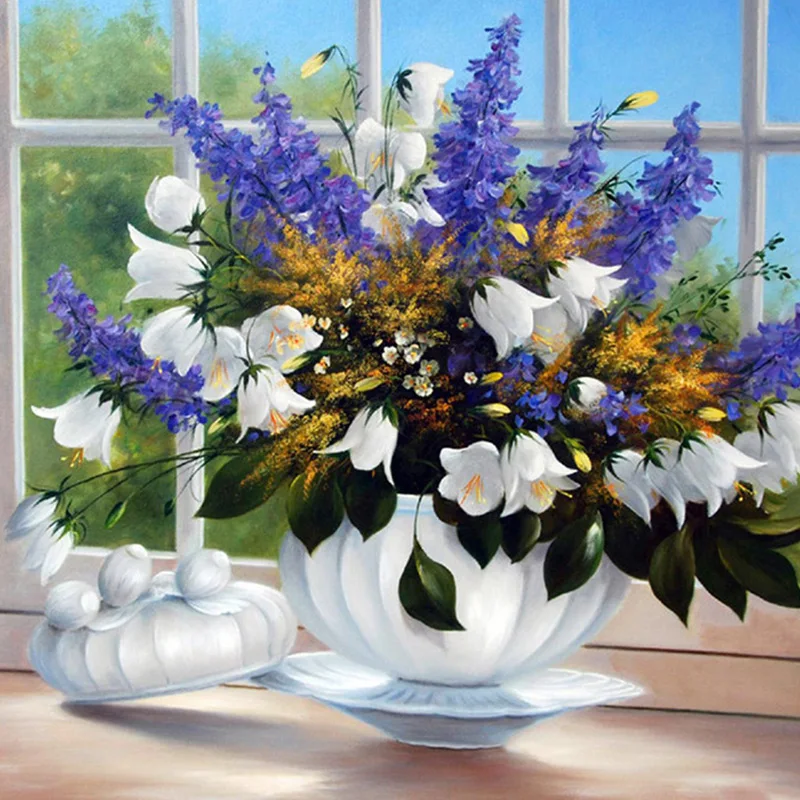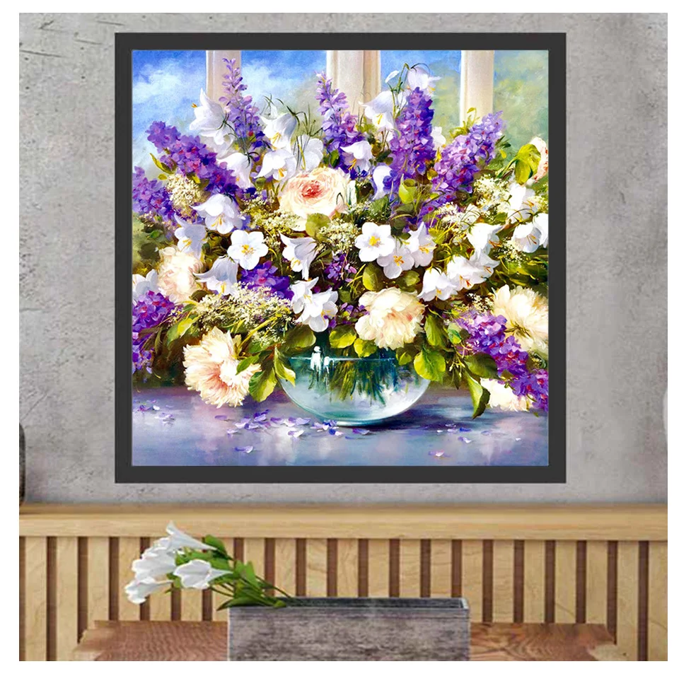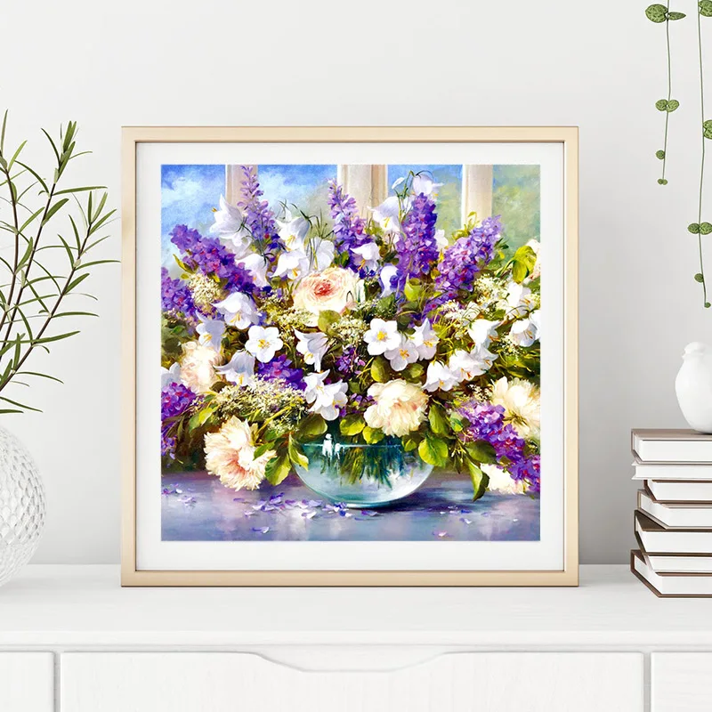 Алмазная картина сделай сам 5D, Набор для вышивки крестиком с изображением фиолетовых цветов, мозаичная картина для стразы, украшение для дома, подарок