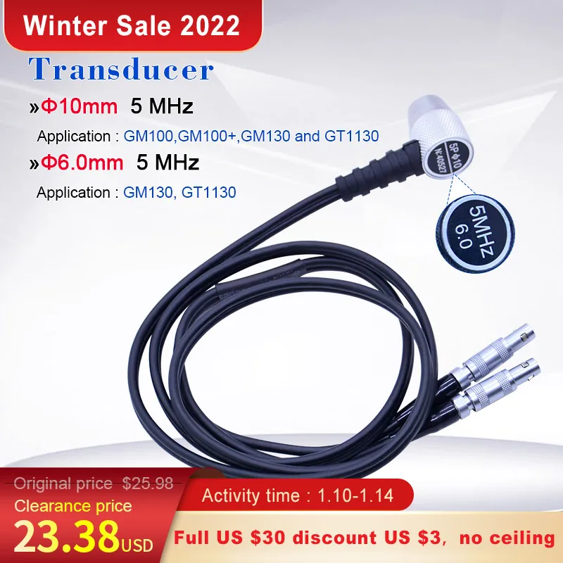Ультразвуковой толщиномер контактный датчик, диаметр 10 мм5 МГц, 6 мм5 Гц, оригинальный зонд для Benetech GM100 GM100 + GM130 GT1130