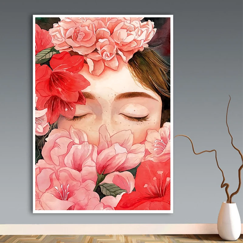 Скандинавский плакат с цветочным узором, портрет девушки из мультфильма, настенное искусство, Картина на холсте, картина для гостиной, домашний декор, скандинавский
