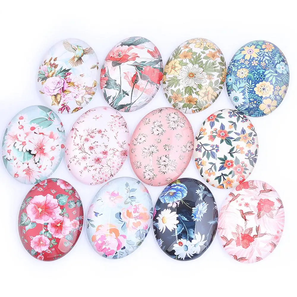 Reidgaller Микс Цветок Птица фото Овальный стеклянный кабошон 18x25 мм 30x40 мм 13x18 мм Diy плоские с оборота ювелирные аксессуары ручной работы