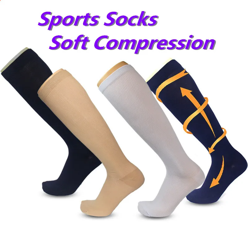 Мужские и женские мужские Компрессионные носки, подходят для спорта, черные Компрессионные носки для снятия усталости, облегчения боли, высокие чулки до колена, спортивные носки