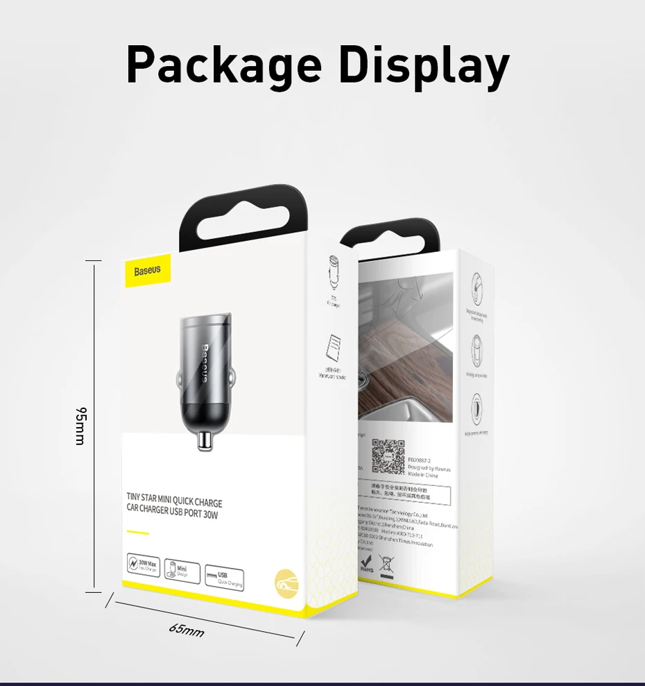 Автомобильное зарядное устройство Baseus, 30 Вт, быстрая зарядка QC...