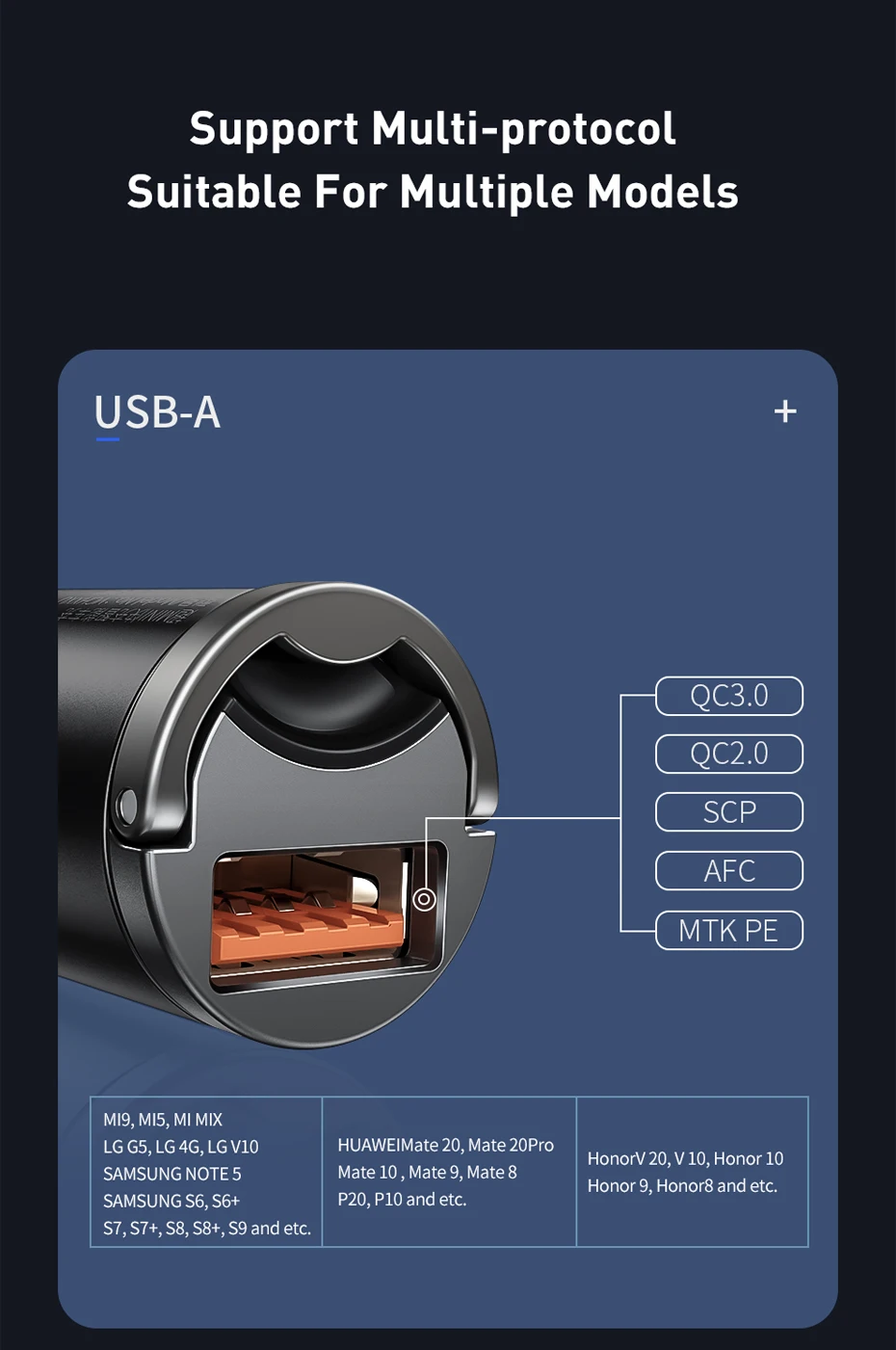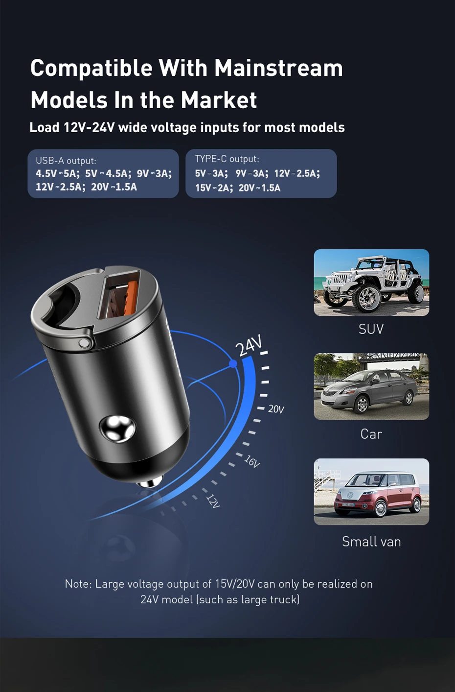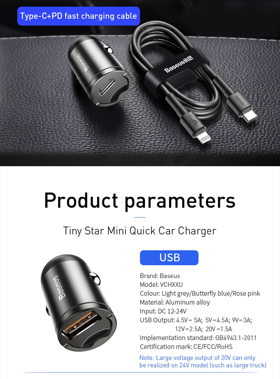 Автомобильное мини-зарядное устройство Baseus PD 3,0, быстрое заряд...