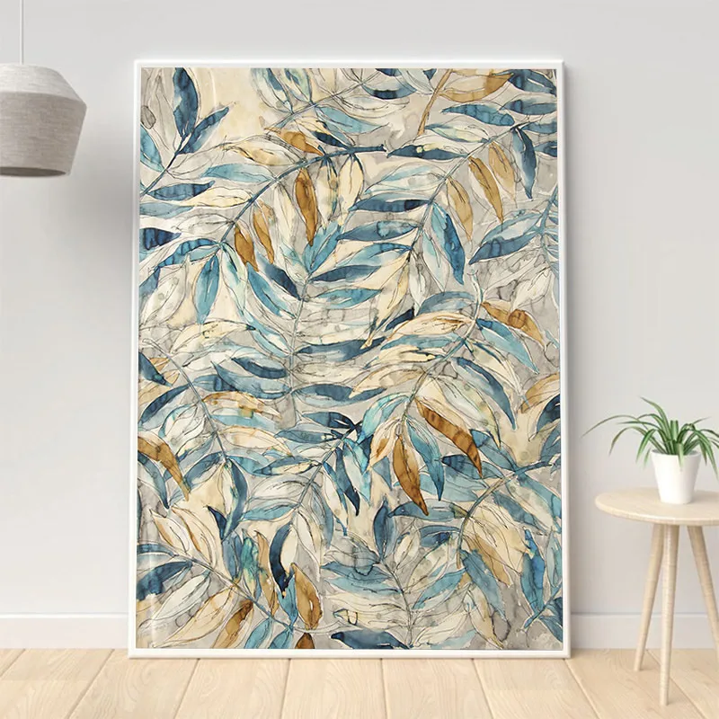 Настенные картины на холсте с листьями в скандинавском стиле, современные постеры и принты для гостиной, домашний декор