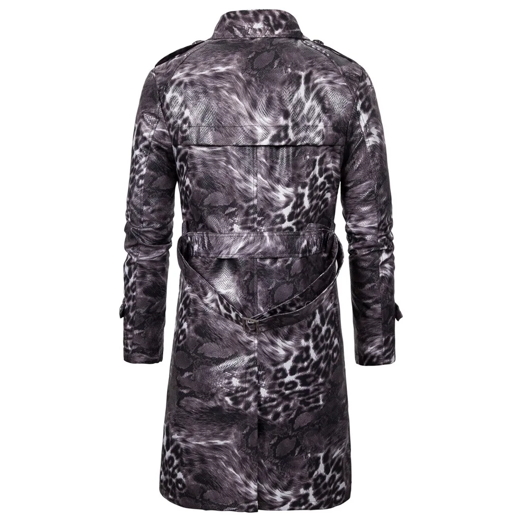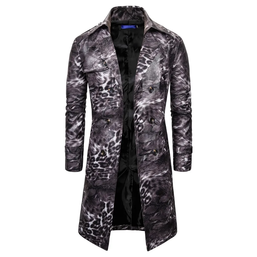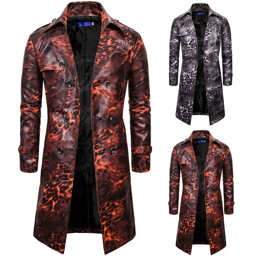 Тренчкот мужской длинный кожаный, винтажная ветровка в стиле стимпанкготикаРетролеопардовой расцветки, 2019