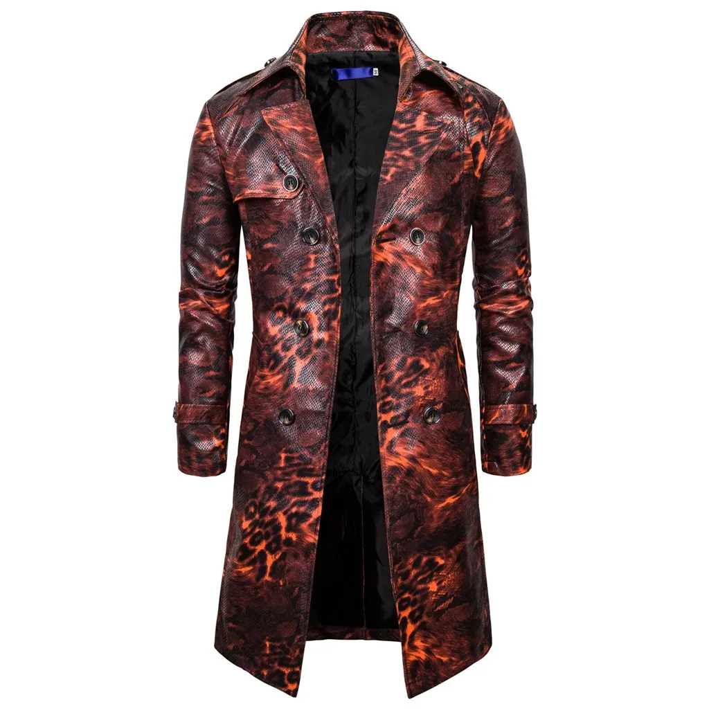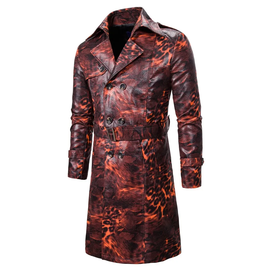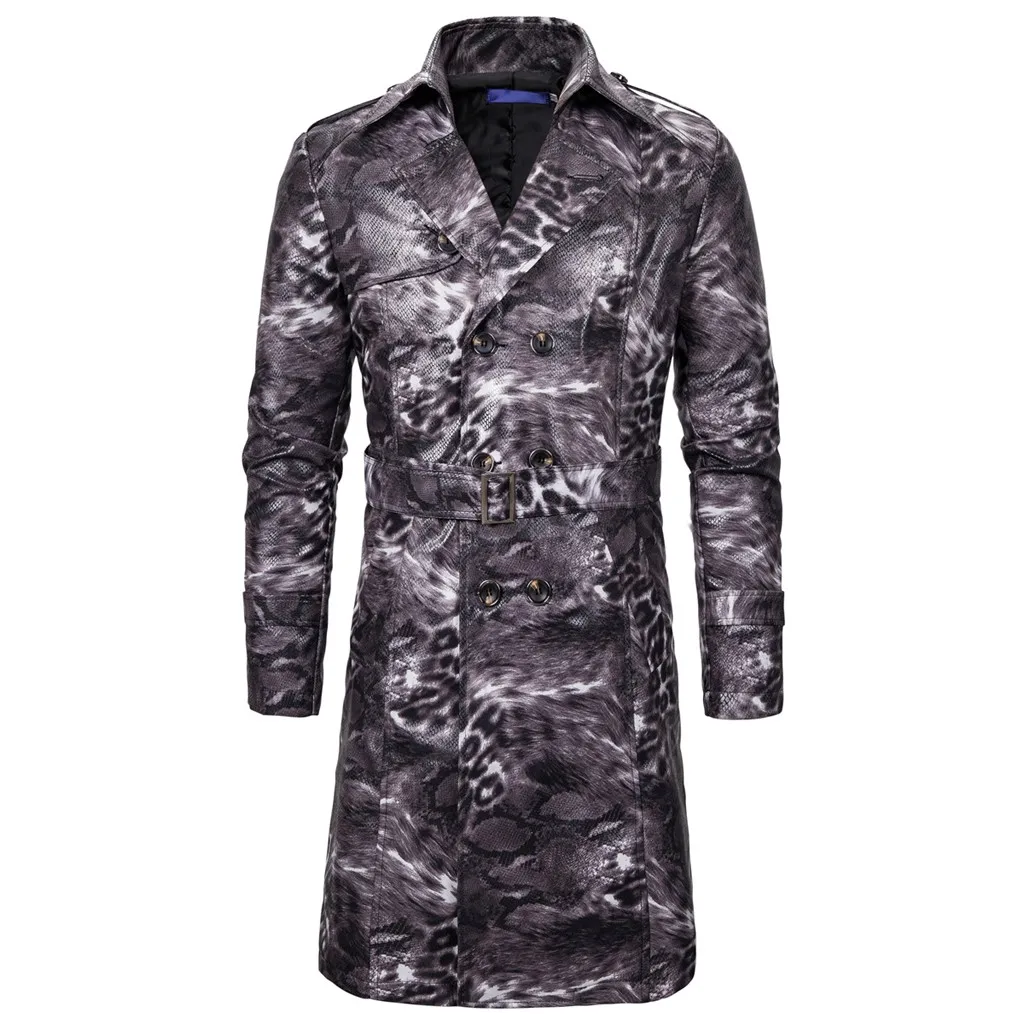 Тренчкот мужской длинный кожаный, винтажная ветровка в стиле стимпанкготикаРетролеопардовой расцветки, 2019
