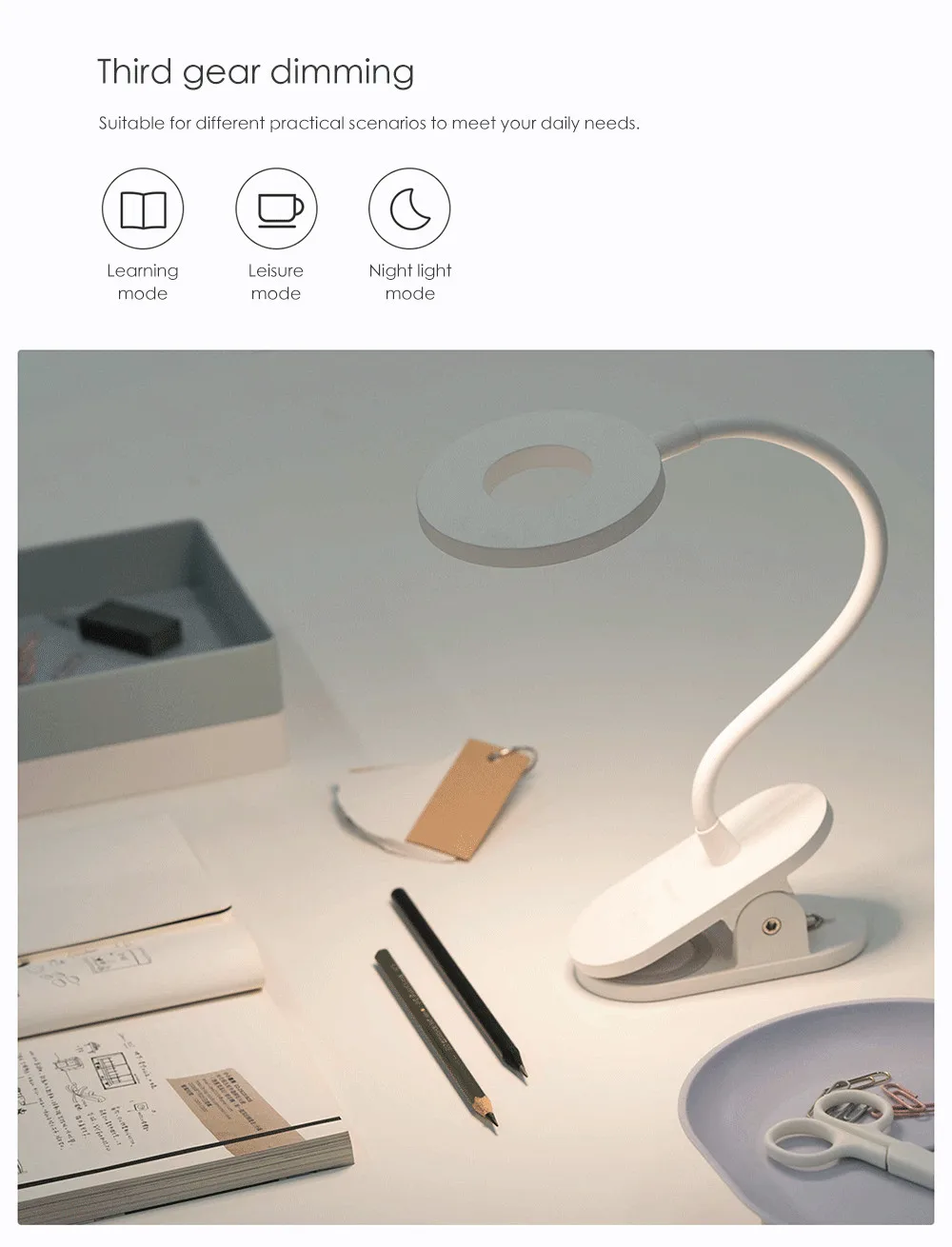 Светодиодная настольная лампа Xiaomi Yeelight, ночник с клипсой, USB-зарядка, 5 Вт, 360 градусов, регулируемый затемнение, лампа для чтения для спальни