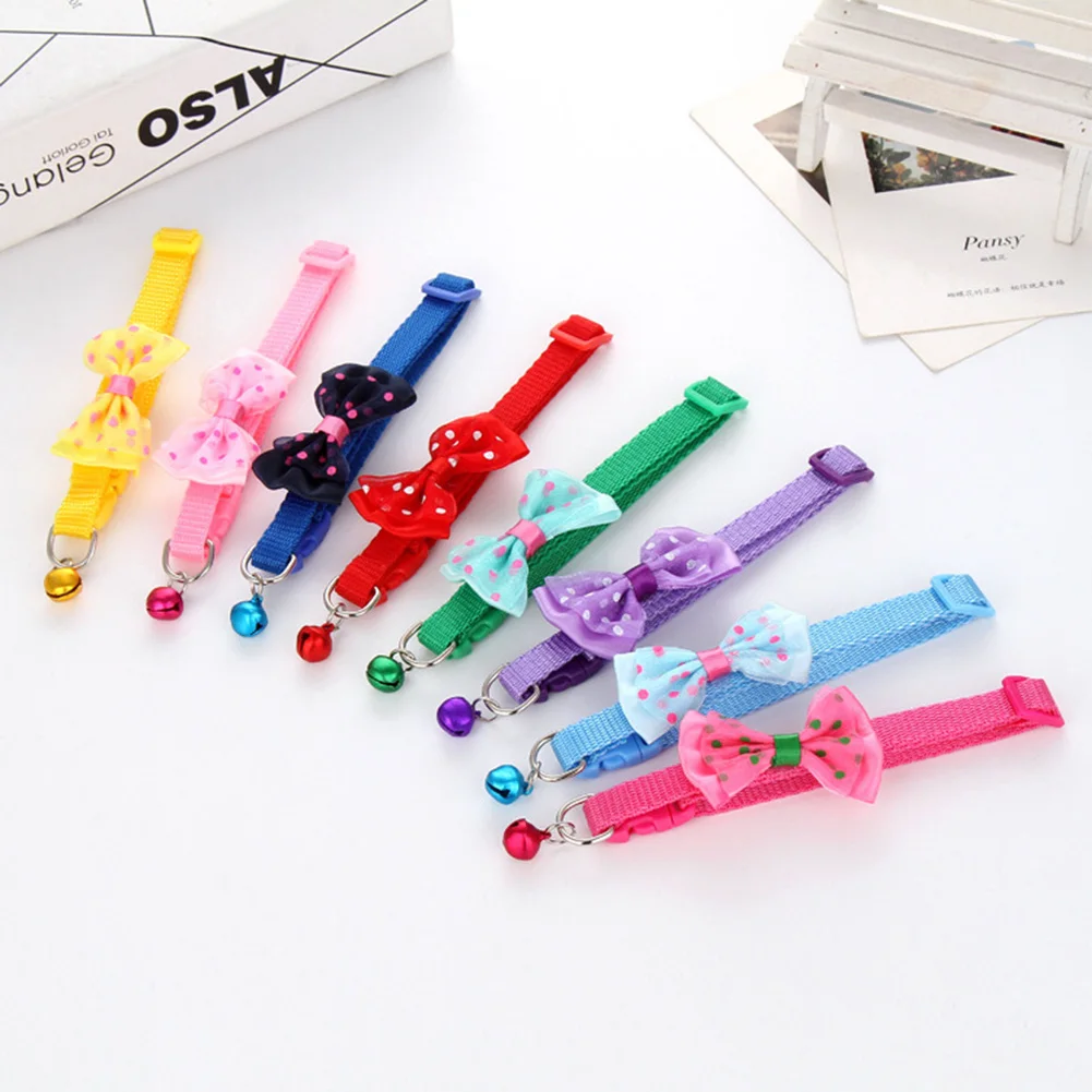 Удобные ошейники TINGHAO, милые ошейники для домашних животных, кошек, собак, щенков, регулируемые воротники с бантом, вечерние ошейники, шейный ремешок с колокольчиком