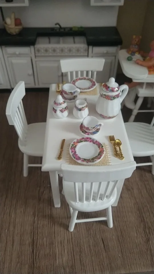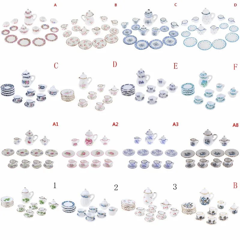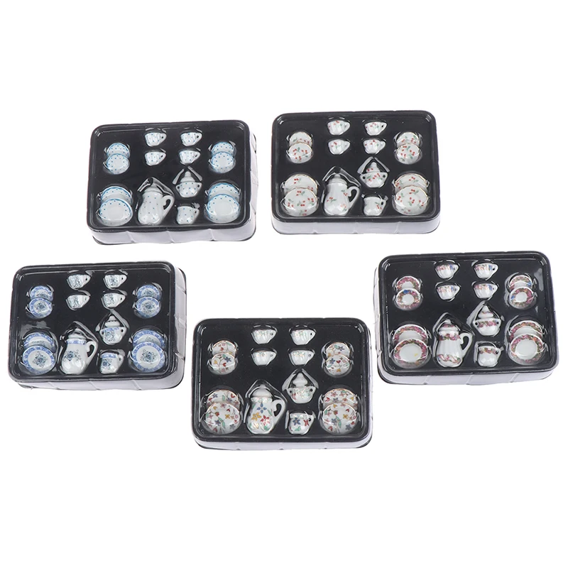 1:12, миниатюрный набор чайных чашек 17 шт., чайный набор, чайный набор, Цветочная посуда, кухонный кукольный домик