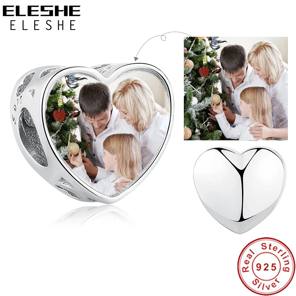 ELESHE 925 серебро сердце, Очаровательные бусы, соответствуют оригинальному браслету, персонализированные пользовательские фото браслеты с подвесками сделай сам, ювелирное изделие Рождественский подарок
