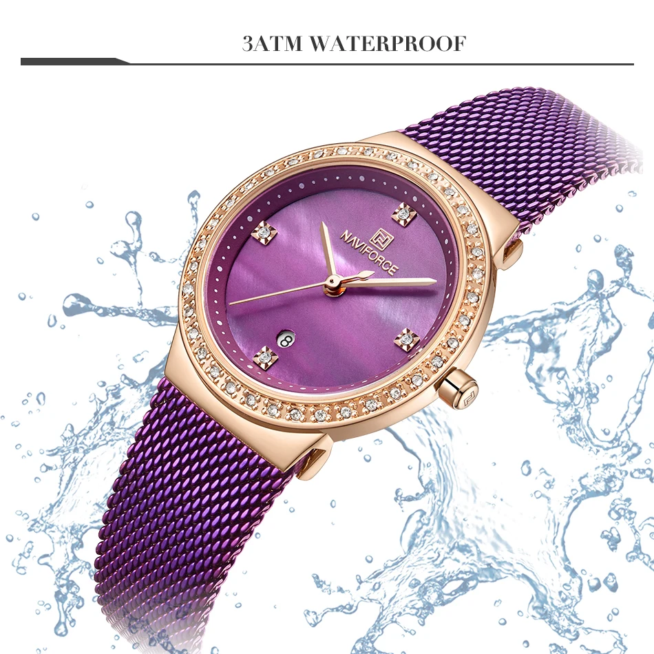 Часы наручные NAVIFORCE женские кварцевые, модные роскошные Брендовые повседневные водонепроницаемые, с датой, подарок для девушки, жены
