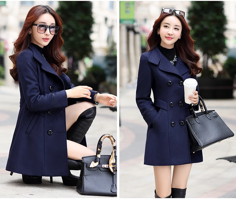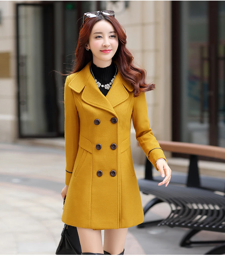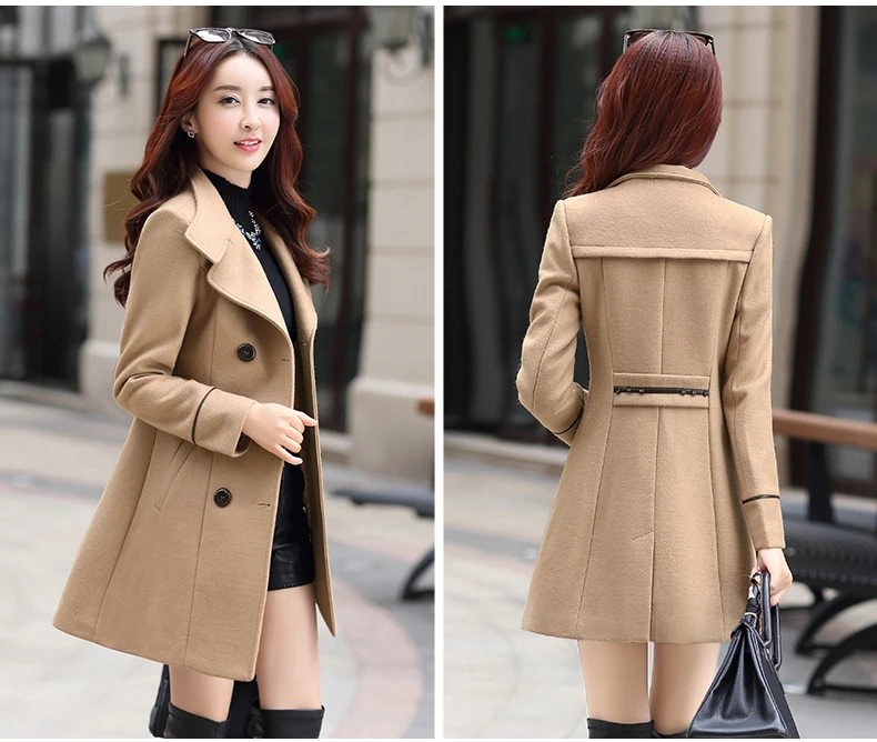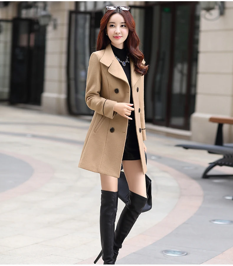 Женское шерстяное теплое длинное пальто размера плюс, женское приталенное шерстяное пальто с отворотом, осенне-зимняя кашемировая верхняя одежда
