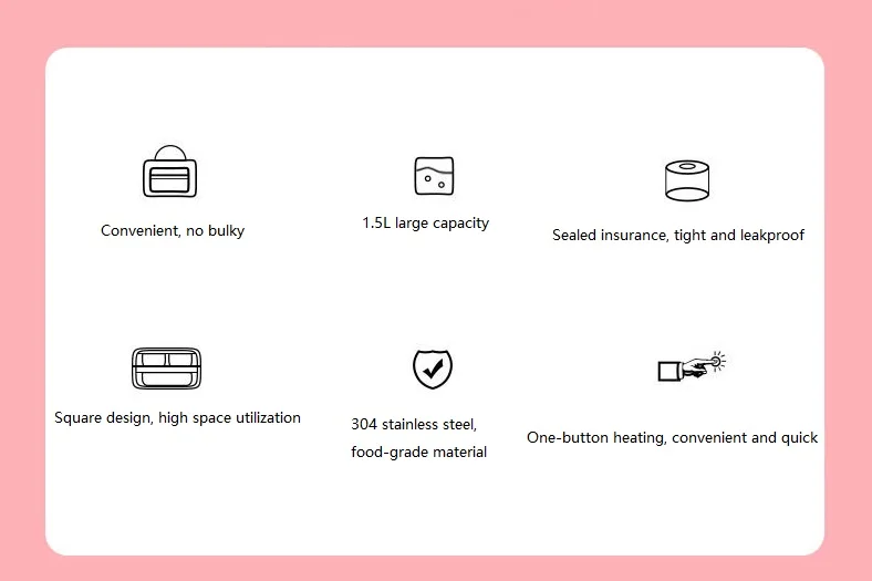 Продукт хорошо нагревает питание быстро и эффективно, но закрывающие крышки имеют мализиновое качество, и самое главное, что он не герметично закрывает, с какими разливами пищи, не рекомендуется. Посылка занимает много времени, чтобы приехать, только хорошая вещь, что она хорошо упакована.