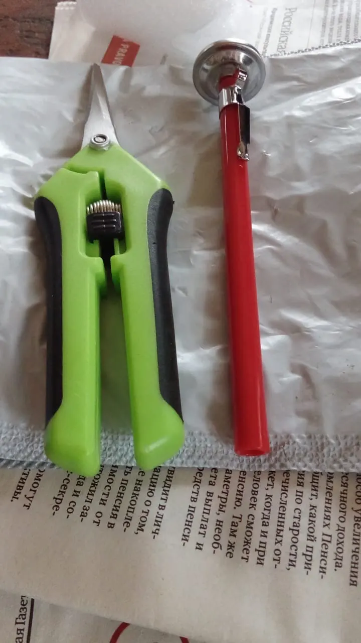 Заказ был сделан 10.12.2020г. Пришёл в Беларусь. Брест 2.02.2021г. Товар удобно держится в руке, острый, хорошо режет бумагу, беру для обрезки пасынков на помидорах, купил себе и ещё один на подарок. Товаром доволен. Продавцу Респект. Ножницы- секатор снабжены фиксатором и пружиной.