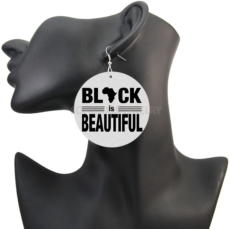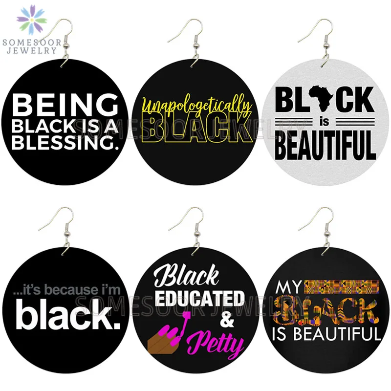 Черные образованные маленькие благословения SOMESOOR, африканские деревянные серьги-подвески, высказывания силы афро, Деревянные ювелирные изделия с принтом для женщин, подарки