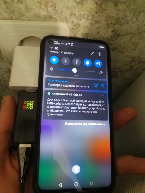 Пришла быстро, телефон заряжается, но со шнуром меня обманули у него нет QC по этому по факту провод бесполезен, если только просто заряжать когда нет др выбора.