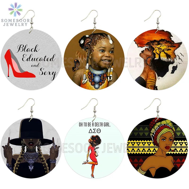 SOMESOOR черные образованные сексуальные девушки Дельта афро деревянные висячие серьги дизайн Африканской карты меланин хип хоп ювелирные изделия для женщин Подарки