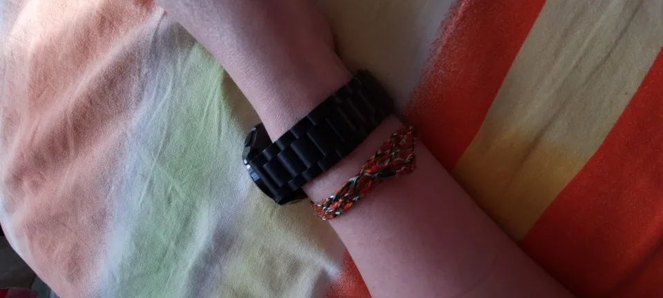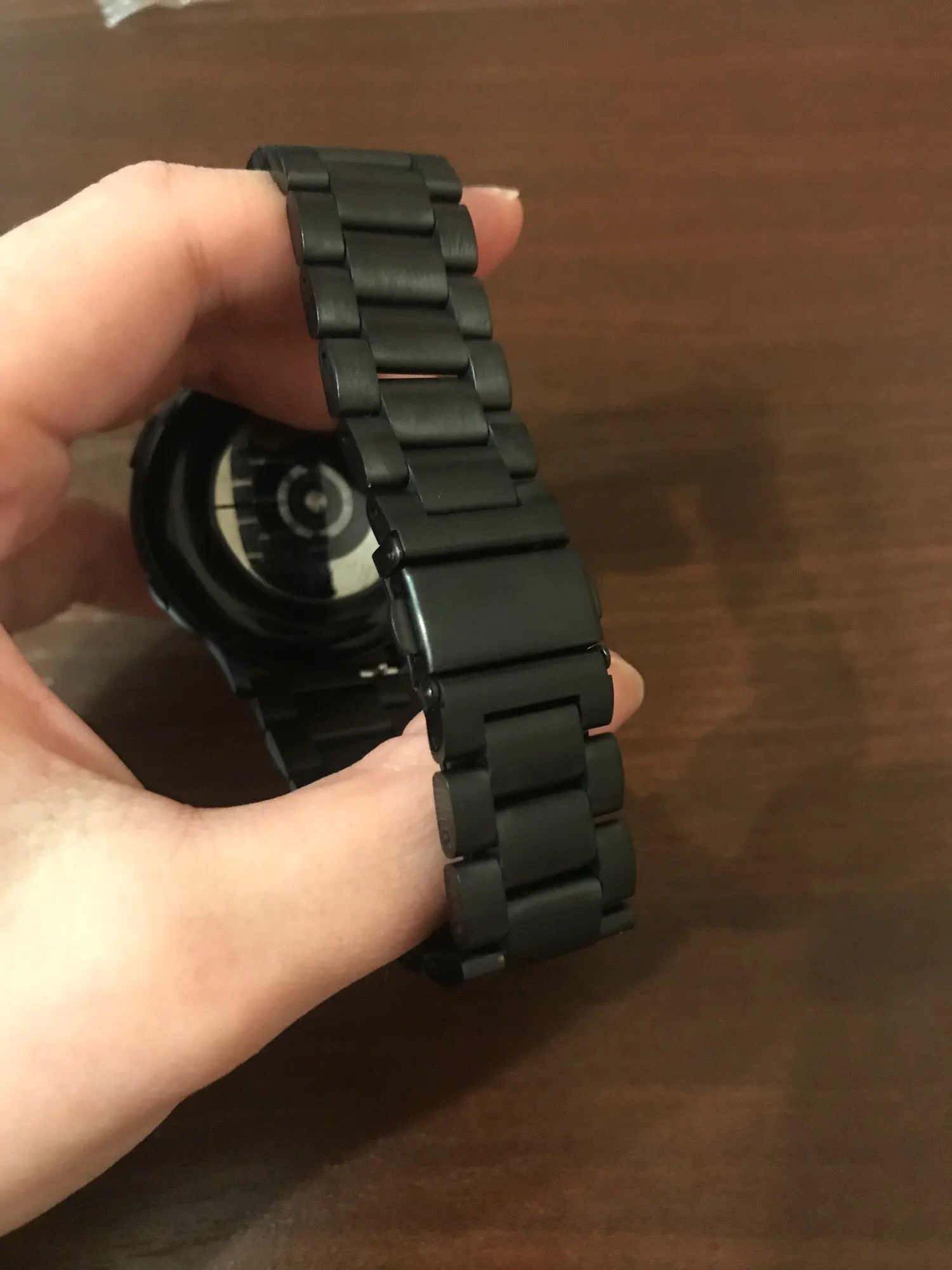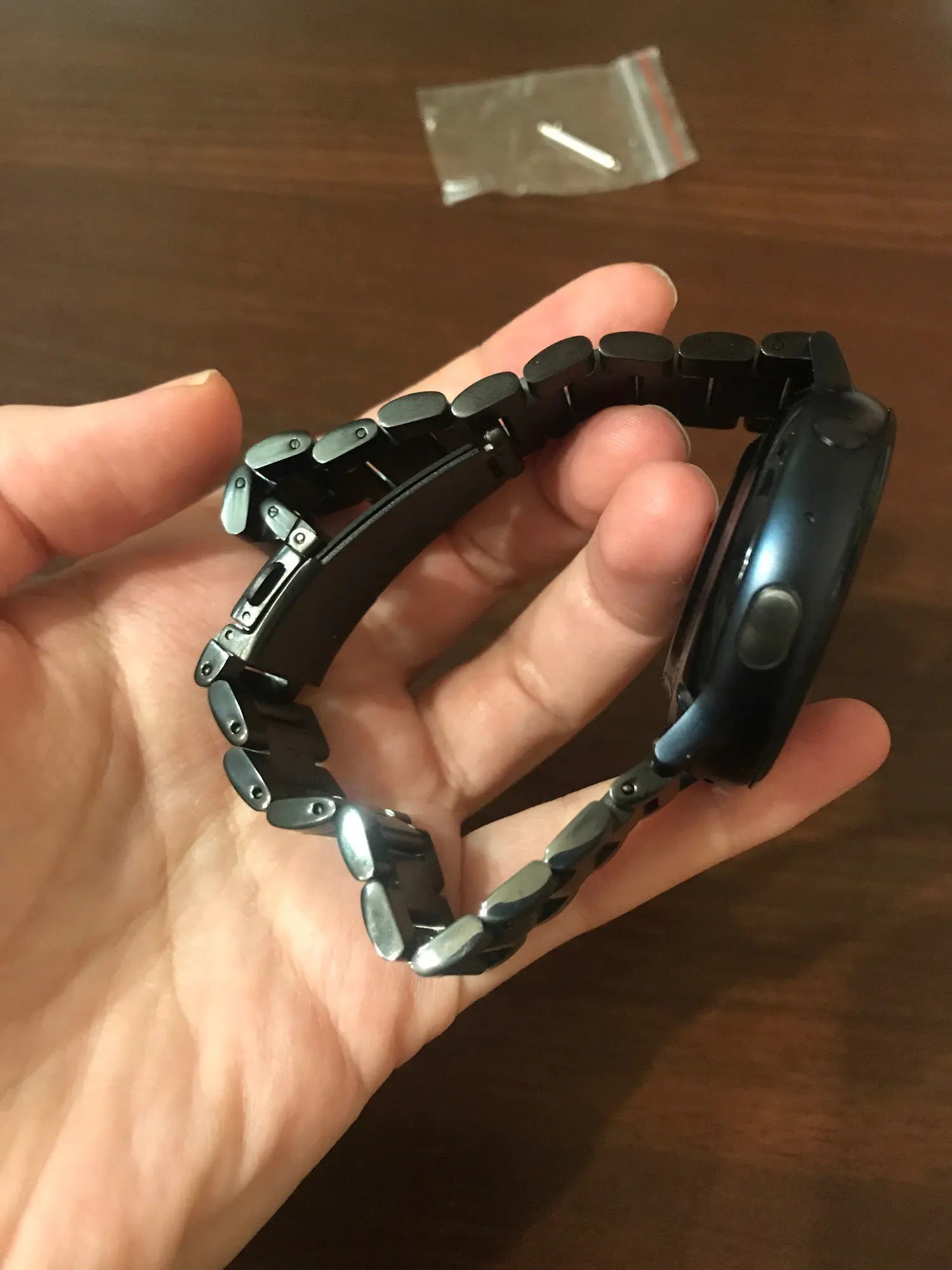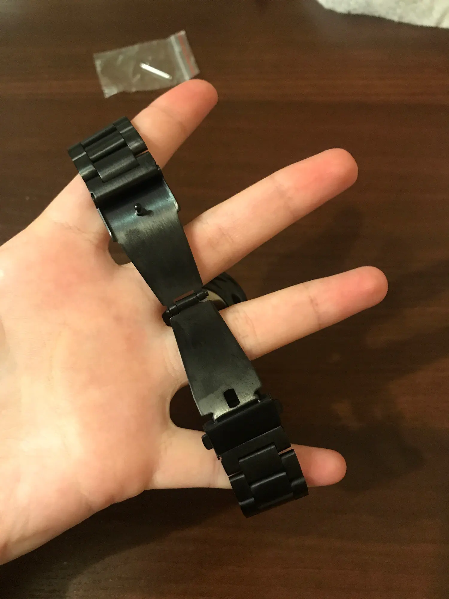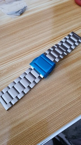 Группы прибыли в течение трех недель, я надел их на часы, и они фантастические! Очень высокое качество по низкой цене, прочные ленты и комфорт на ощупь. Черный цвет на сетке выглядит отлично, а на лентах звеньев-начесом, сторона звеньев отполирована. Мне понравились быстрые настоящие булавки, их легко заменить с одной ленты на другую.