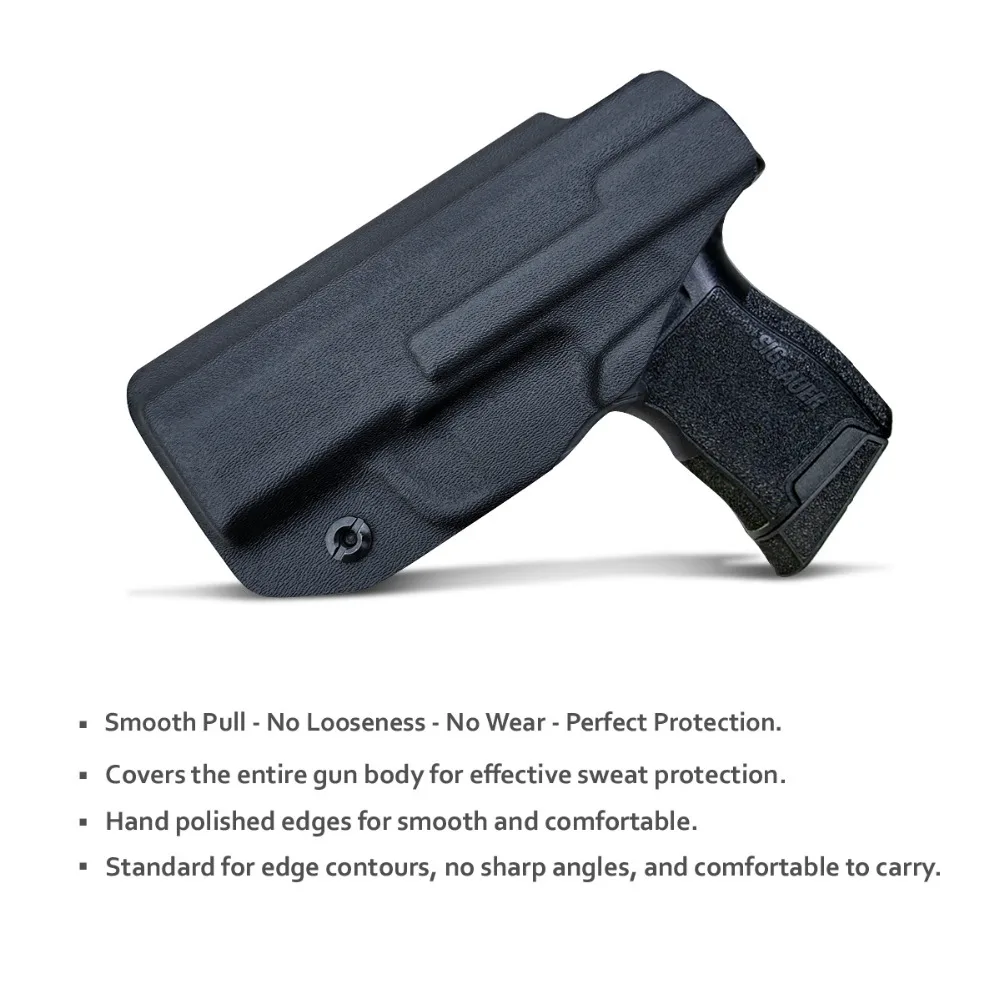 Носите с уверенностью: пожалуйста, не стесняйтесь использовать нашу портативную Скрытая кобура, чтобы защитить ваш пистолет Sig Sauer. Это наша Высококачественная кобура KYDEX IWB, разработанная для модели Sig Sauer P365. Он не только высокоточный, но и прочный, его можно спрятать и переносить, поэтому вы можете защитить себя в любое время и в любом месте.