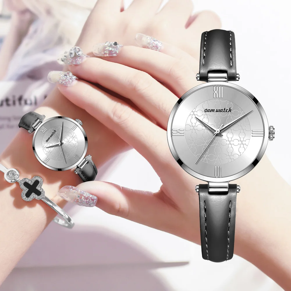 DOM женские часы топовый бренд Роскошные водонепроницаемые часы Модные женские кожаные ультра-тонкие повседневные наручные часы кварцевые часы