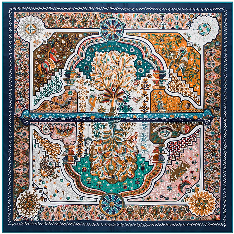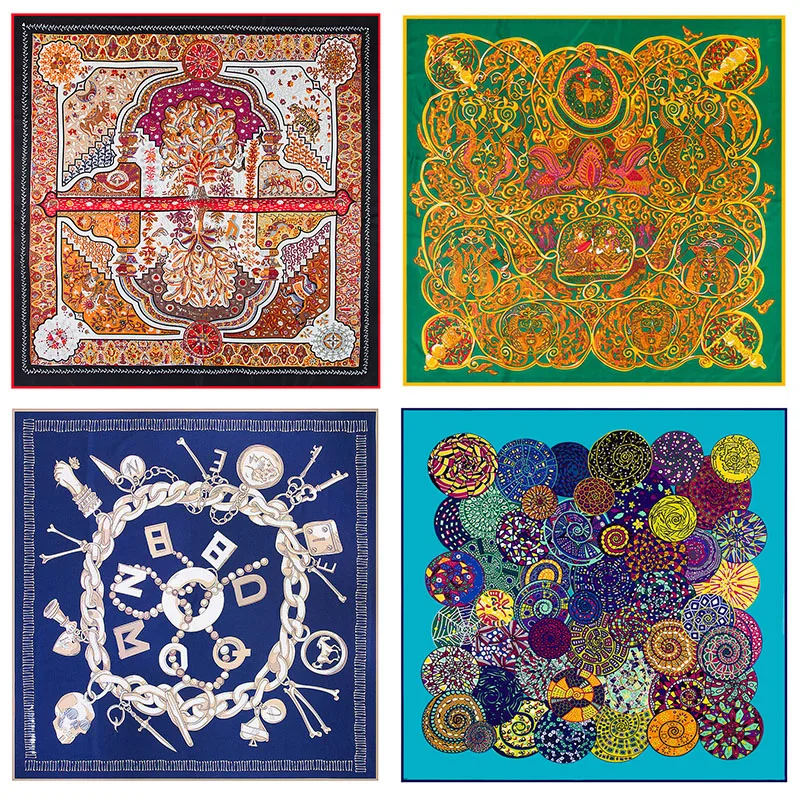 Шарф из 100% шелка и твила, женский шарф с узором в виде макрокарпа, большой платок, шаль из пашмины, накидка 130-130 см, тюрбан, хиджаб, шарф