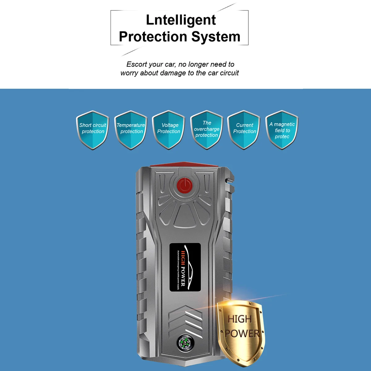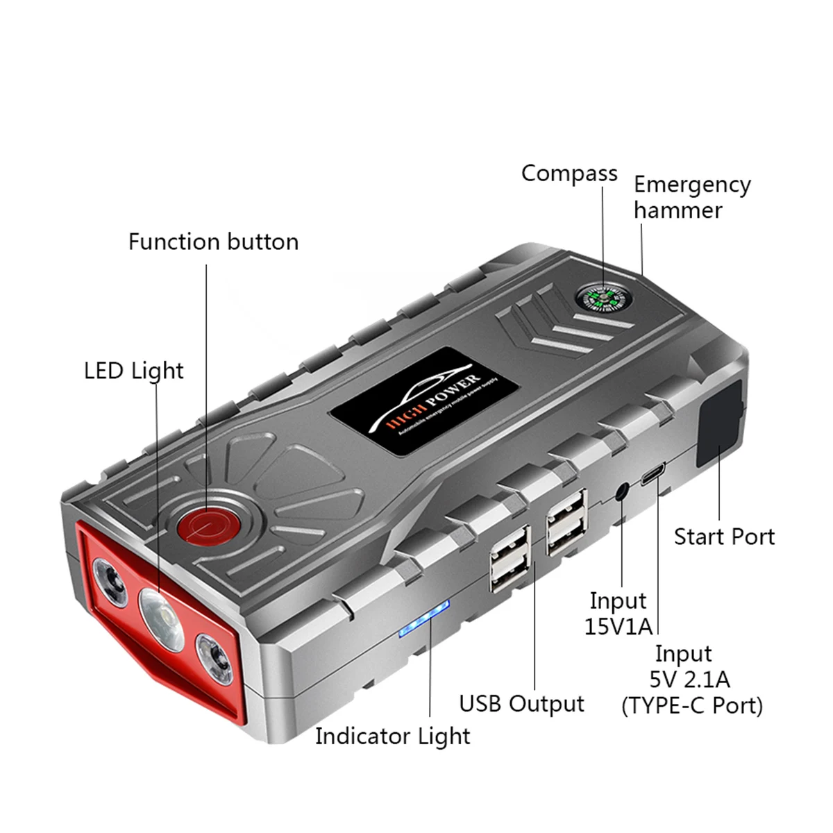 Автомобильное пуско-зарядное устройство 95600 мАч 12 В, портативный USB Аккумулятор зажим усилителя 800A [Большая емкость]Новый дизайн 2019 года с большой емкостью аккумулятора 95600 мАч. [Мультисовместимость]Подходит для ≤ 6,0 л бензиновых вигиклей и ≤ 3,0 л дизельного масла. 【 Многофункциональный 】Светодиодный ные/SOS лампы + аварийный молоток + компас [Безопасный дизайн]Защита от высоких температур/Защита от короткого замыкания/Защита от перезаряда/Защита от обратного подключения/Защита от стабильного напряжения 【 4 USB】4USB означает, что несколько устройств могут заряжаться одновременно.Посылка входит:1) автомобильное пуско-зарядное устройство (Power-bank) * 12) зажимы аккумулятора (красный = Положительный; Черный = отрицательный) * 13) зарядное устройство прикуривателя * 14) USB-кабель Type-C для зарядки * 15) разъем USB для зарядки * 16) зарядный кабель 4 в 1*17) инструкции на английском языке * 18) чехол для инструмента в розницу * 1 Комплектация:Подходит для ≤ 6,0 л бензиновых вигиклей.Подходит для ≤ 3,0 л дизельного масла Vihicles.Характеристики:Цвет: серыйМатериал корпуса: ABSЕмкость: 95600 мАчРазмер: 185*85*30 ммЗначение выходного напряжения: 12 ВНапряжение зарядки: 15 В/1 А и 5 В/2,1 АВремя зарядки: 2-3 часаПусковой ток: 300 АМаксимальный ток: 800 АРабочая температура-диапазон: -40 градусов ~ + 85 градусовОсобенности:-100% новый и качественно сделан.-Небольшой размер, тонкий и удобный для переноски.-Водонепроницаемость и Пыленепроницаемость (ежедневная водонепроницаемость, пожалуйста, не погружайте изделие непосредственно в воду).-Поддержка 12V 6.0L бензиновых транспортных средств и 12V 3.0L дизельный двигатель запуск моментально.-Высокая мощность-аккумулятор, который поддерживает быструю зарядку, низкий саморазряд, циклы могут достигать-1000 раз.-Поддержка 12V запуска автомобиля и зарядки для различных сотовых телефонов, PSP, MP3/MP4, планшета, смартфонов, КПК, ноутбука, ноутбука.-4 USB разъема для удовлетворения ваших многократных потребностей в зарядке телефонов и ноутбуков.-Множественная конструкция защиты обеспечивает пусковое устройство с нулевыми дефектами.-С индикатором уровня заряда батареи.-Три режима света: светодиодный фонарь, красный и синий светильник s,SOS, светодиодный взрыв-мигание-Температурная защита, защита от короткого замыкания, защита от постоянного напряжения, защита от постоянного тока. Предупреждение:1) не отменяйте последовательность запуска.2) Не используйте пуско-зарядное устройство для запуска автомобиля, если количество индикаторов или фар меньше 3, чтобы защитить Пуск от повреждений.3) снимайте пуско-зарядное устройство с аккумулятора транспортного средства в течение 30 секунд после запуска транспортного средства4) специальные меры предосторожности автомобиля EPS.Советы:1) сначала рекомендуется зарядить и разрядить электроэнергию.2) Срок годности аккумулятора, независимо от того, используете вы его или нет, рекомендуется заряжать и поддерживать один раз в два месяца.3) Если вы не используете его в течение длительного времени, пожалуйста, сохраните источник питания 3 или 50% или более и зарядите аккумулятор не реже одного раза в два месяца, чтобы поддерживать аккумулятор.4) при запуске автомобиля проверьте, не зажимаются ли зажимы аккумулятора к разъему аккумулятора.Примечание:1. Мы предоставляем четкие фотографии и измерения, где это возможно. Пожалуйста, проверьт